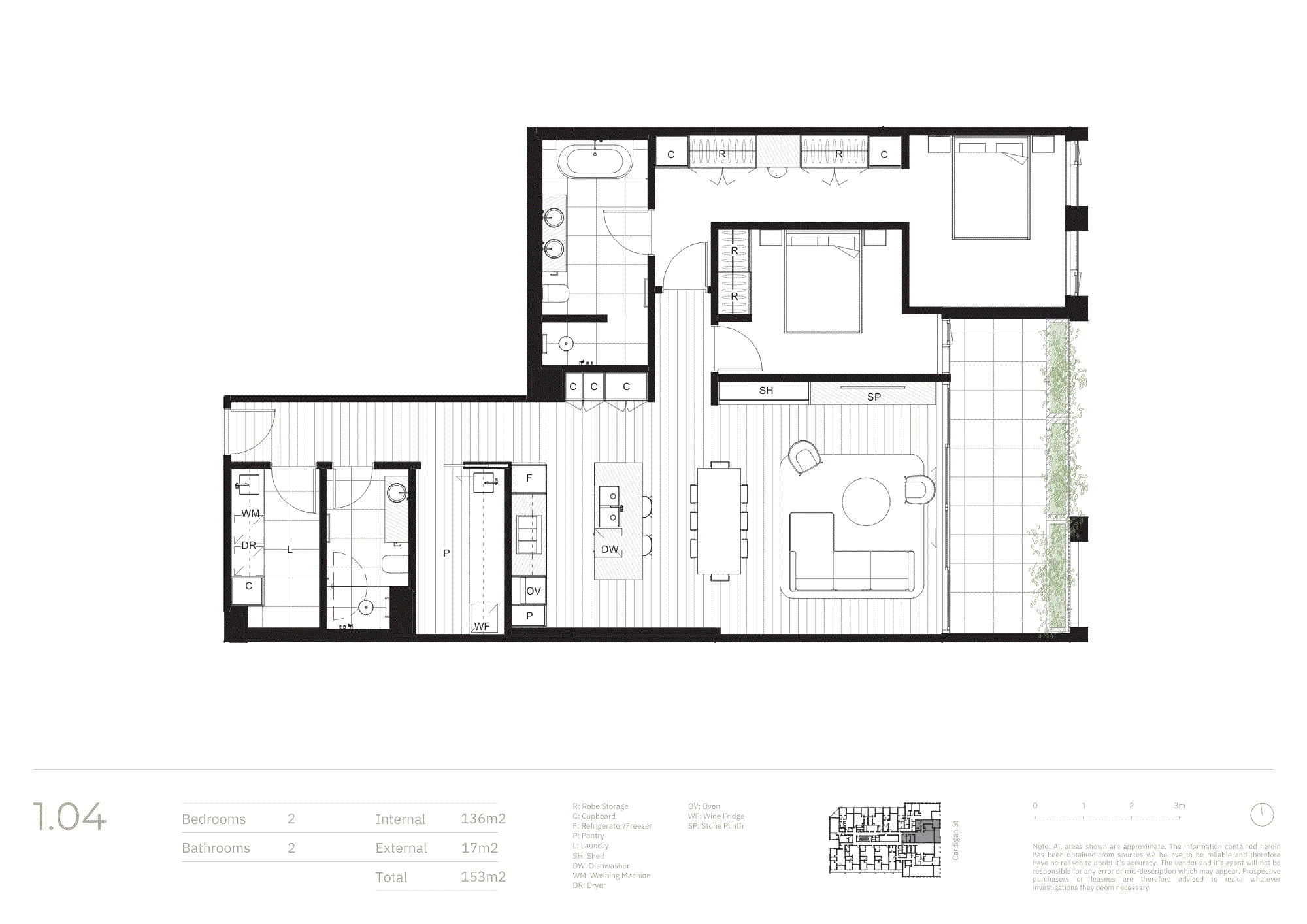 Comprising two generously proportioned bedrooms with excellent storage. The master suite features a beautifully appointed ensuite, while the remaining bedroom is serviced by a sophisticated central bathroom. Thoughtful planning ensures privacy, comfort and liveability throughout.