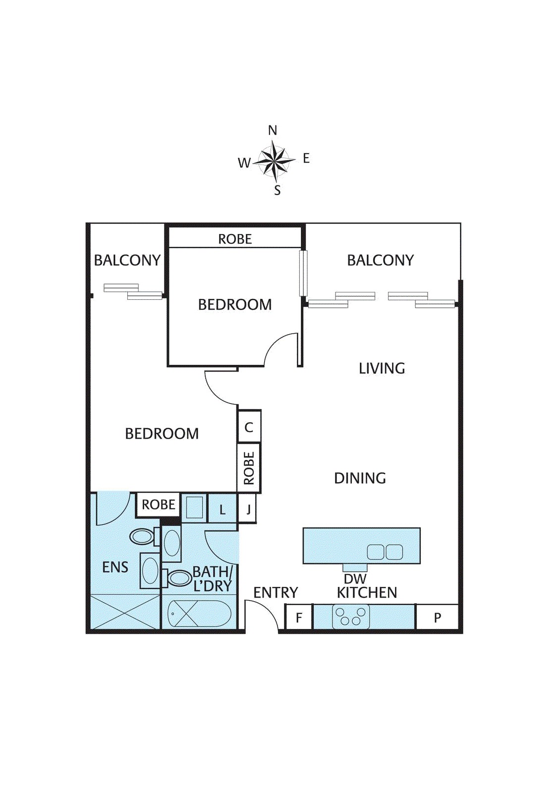 - Two bedrooms with built-in robes, main with ensuite and balcony