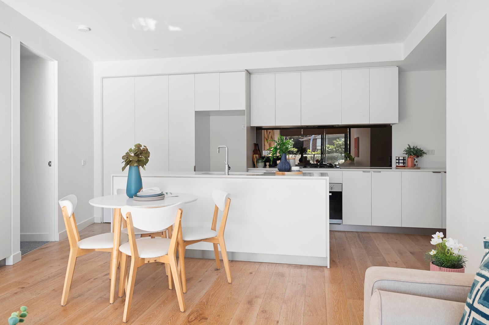 Boldly crafted to fill its every corner with natural light, a vast open-plan kitchen / dining living reveals stone working surfaces – including a generous waterfall-edged island – and stainless-steel appliances before flowing out to a broad terrace that draws glorious morning sun and frames sweeping views to the east. Securely accessed via video entry with basement parking for two vehicles and a fob-activated elevator, the home also features a bright primary bedroom ensuite, built-in robes in each bedroom, a generous central corridor and European Oak flooring, as well as split system heating / air conditioning.