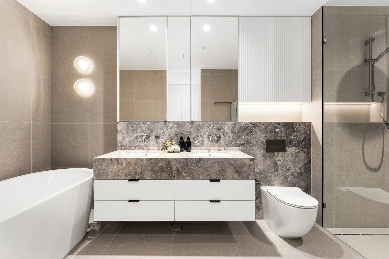 Complementing Carr’s architectural vision, acclaimed landscape architects ACRE have created lush, layered gardens that bring texture, softness, and privacy, while echoing the natural beauty of the coastal setting. The result is a rare fusion of urban sophistication and bayside tranquillity.