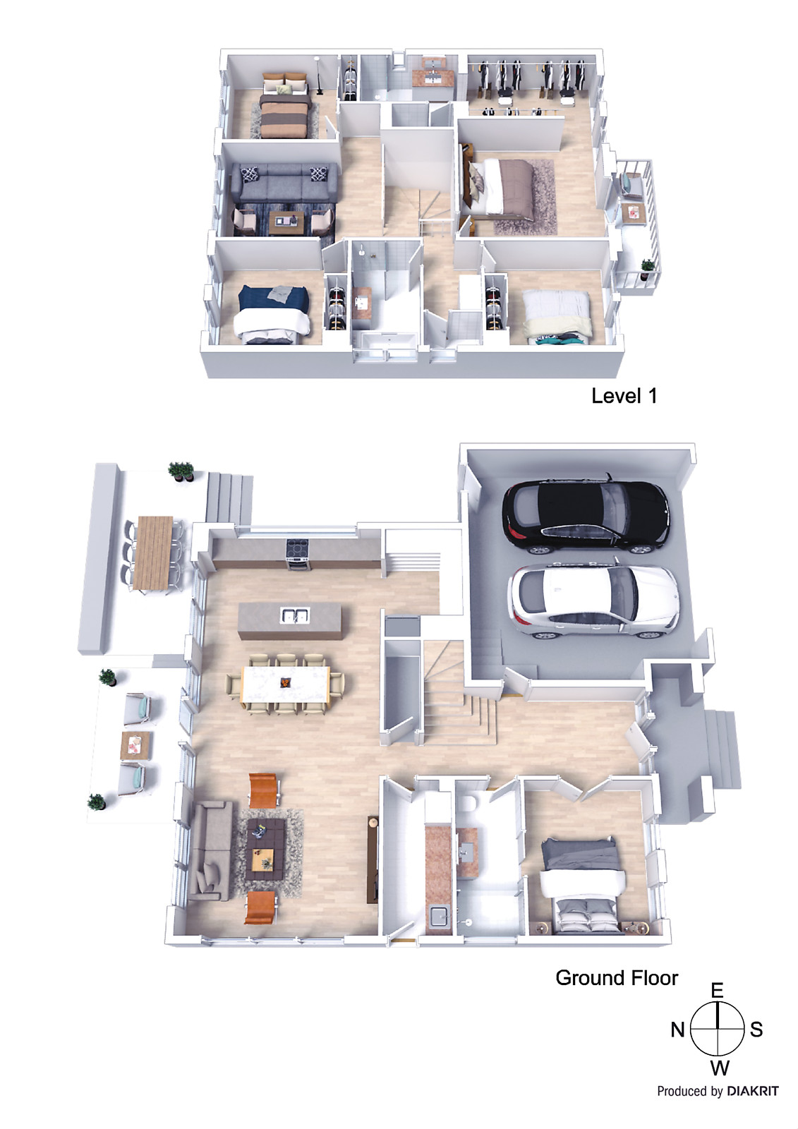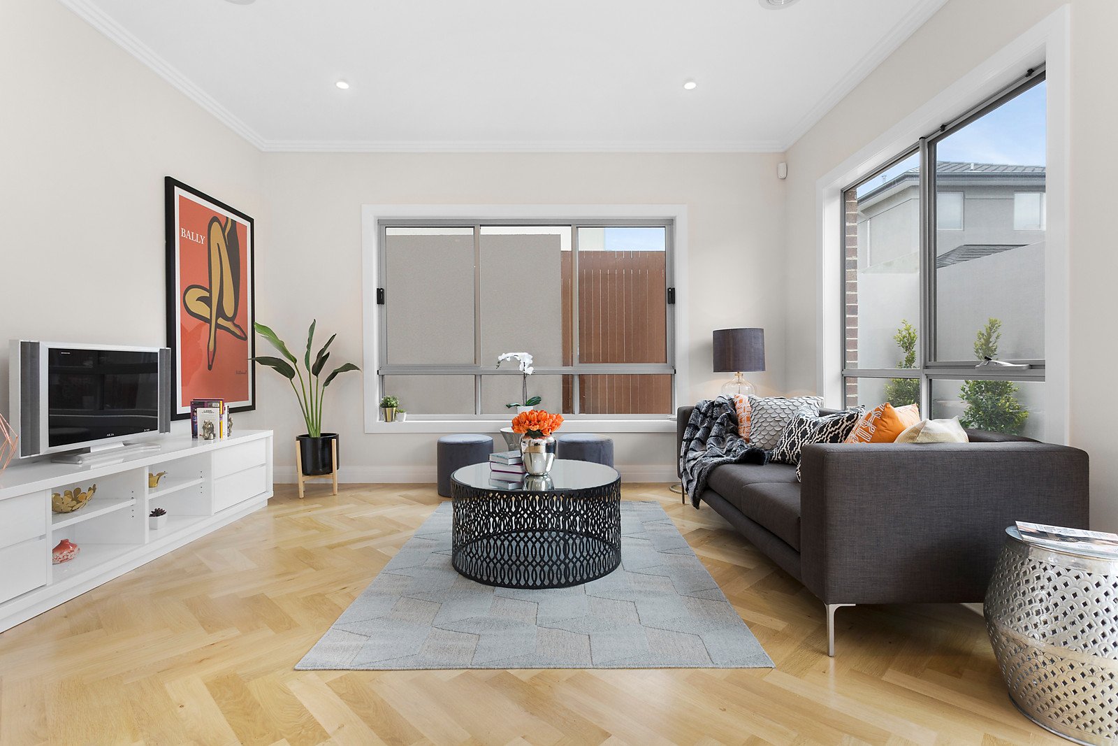 The ground floor ceiling soars at three metres, inviting guests along the French Oak herringbone parquet floor to the sun-splashed dining and living room. Entertain on the superb north deck, surrounded by a garden designed by an award-winning landscaper. Alongside, the sleek kitchen is a fabulous centrepiece with stone benches and 900mm stainless steel oven.