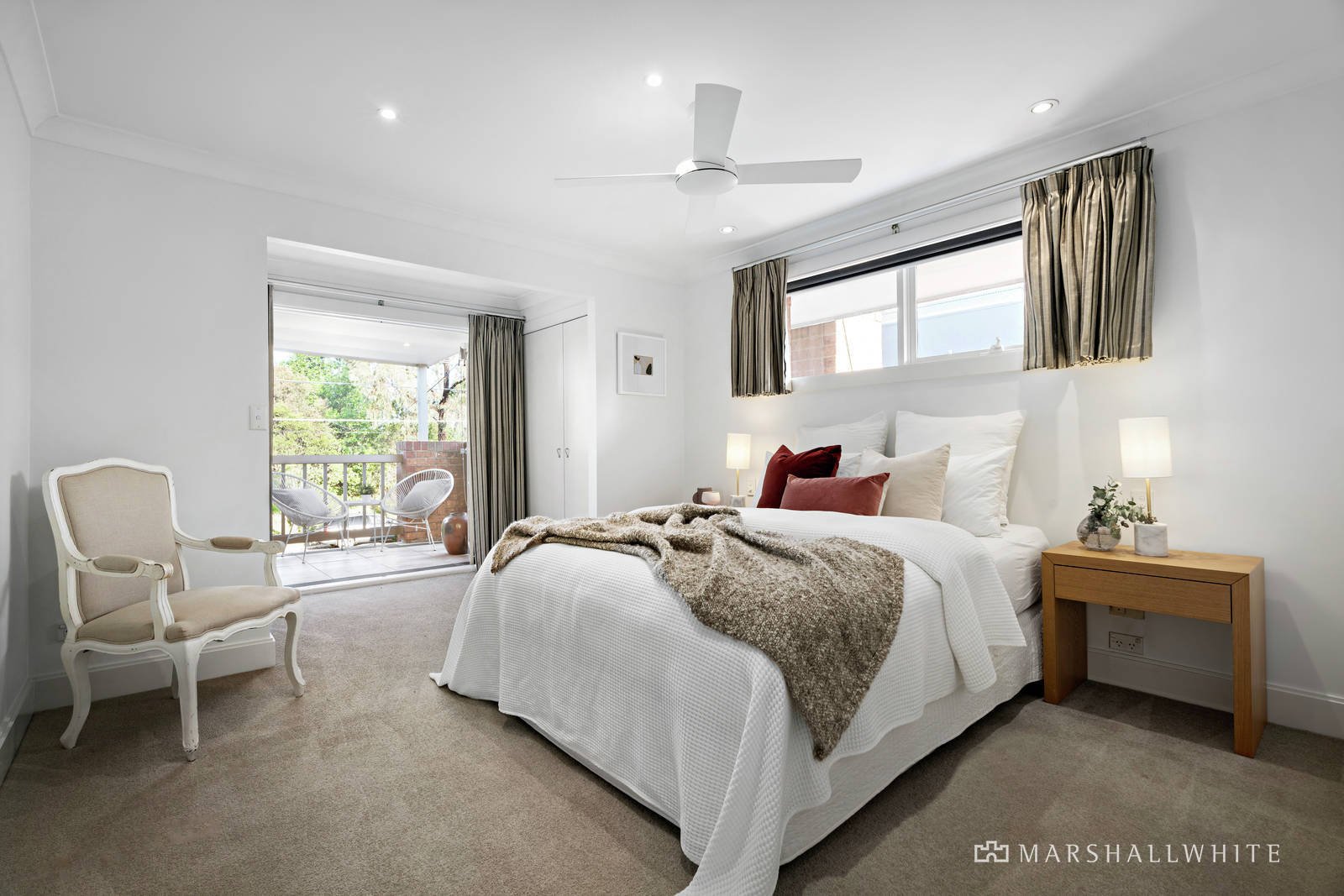 Upstairs are a further two bedrooms including the master suite which has access to the front balcony, with lovely tree-top neighbourhood views, two sets of built-in robes, plus an ensuite bathroom. The third bedroom has built-in robes and is serviced by the main bathroom which has a bathtub and walk-in shower.