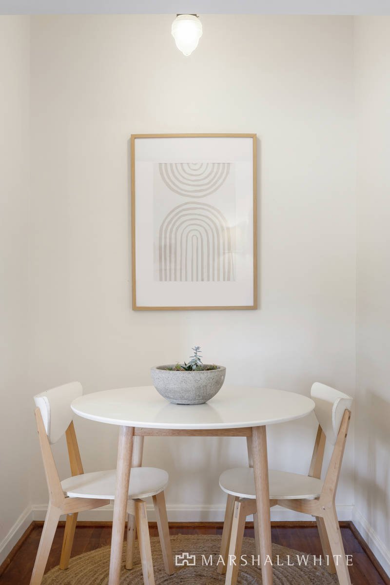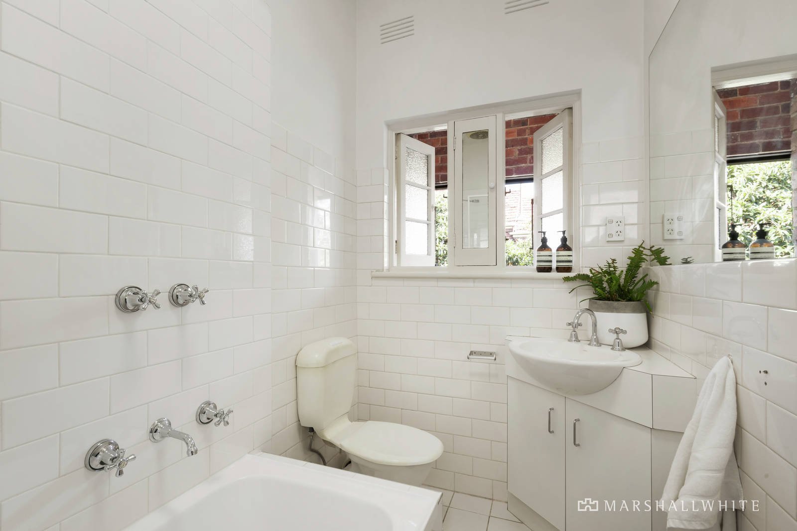 With polished hardwood under foot and superbly detailed ceilings overhead, the apartment's generous lounge and dining area opens to one of its two balconies and is semi-attached to a pristine kitchen of timber surfaces and white cabinetry. Meanwhile, the bedroom is appointed with built-in robes and ensuite access to a subway-tiled bathroom, plus there are laundry facilities in the kitchen and secure intercom entry.