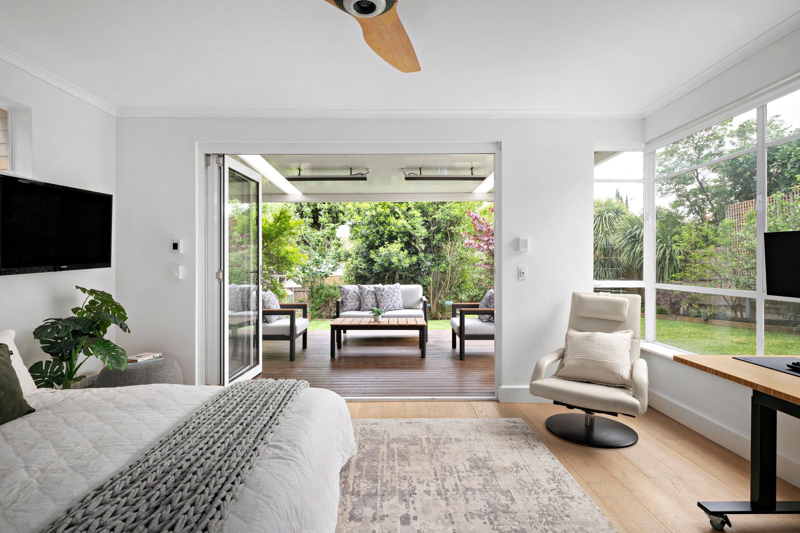 Instantly engaging, the home opens to reveal boldly contemporary and light-filled open-plan living, that is anchored by a fully Miele-equipped kitchen – including induction cooking – and is organised around a vast, welcoming island bench of waterfall-edged stone that comfortably seats the whole clan. Lovers of an alfresco life will cherish seamless connection to a deck that captures plenty of afternoon sun and is set under an automated awning for year-round enjoyment.