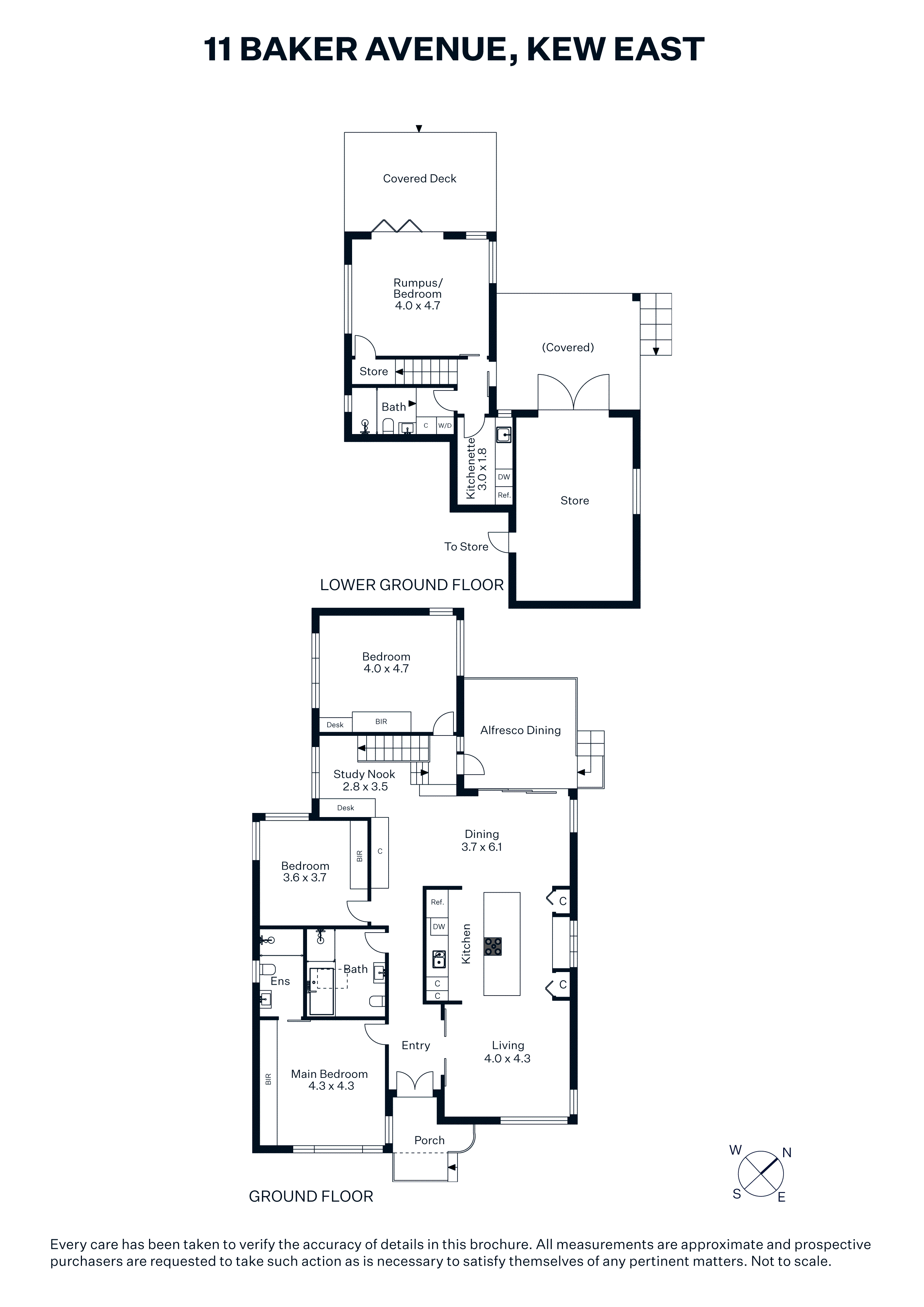 Downstairs, the studio / fourth bedroom has been brilliantly completed with its own independent access, a kitchenette and an ensuite / laundry, as well as a second deck that is undercover and outdoor-heated, also for year-round enjoyment and in-law appeal. Meanwhile, the primary bedroom is enormous with a fully-tiled ensuite that is themed to the other bathrooms and a vast wall of custom built solid timber built-in robes, whilst the remaining bedrooms are also finished with substantial robes.