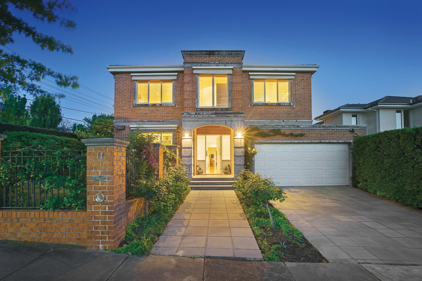 The timeless classically designed exterior reveals contemporary elegance and expansive proportions through the imposing entrance, refined study and generous formal sitting and dining room. The inviting living and dining room served by a gourmet European stone kitchen opens out to a glorious northeast private landscaped garden with covered BBQ terrace and solar heated self-cleaning pool. The superb proportions are continued upstairs through the main bedroom with stylish en-suite and walk in robe, three additional fitted bedrooms and a bright bathroom.
