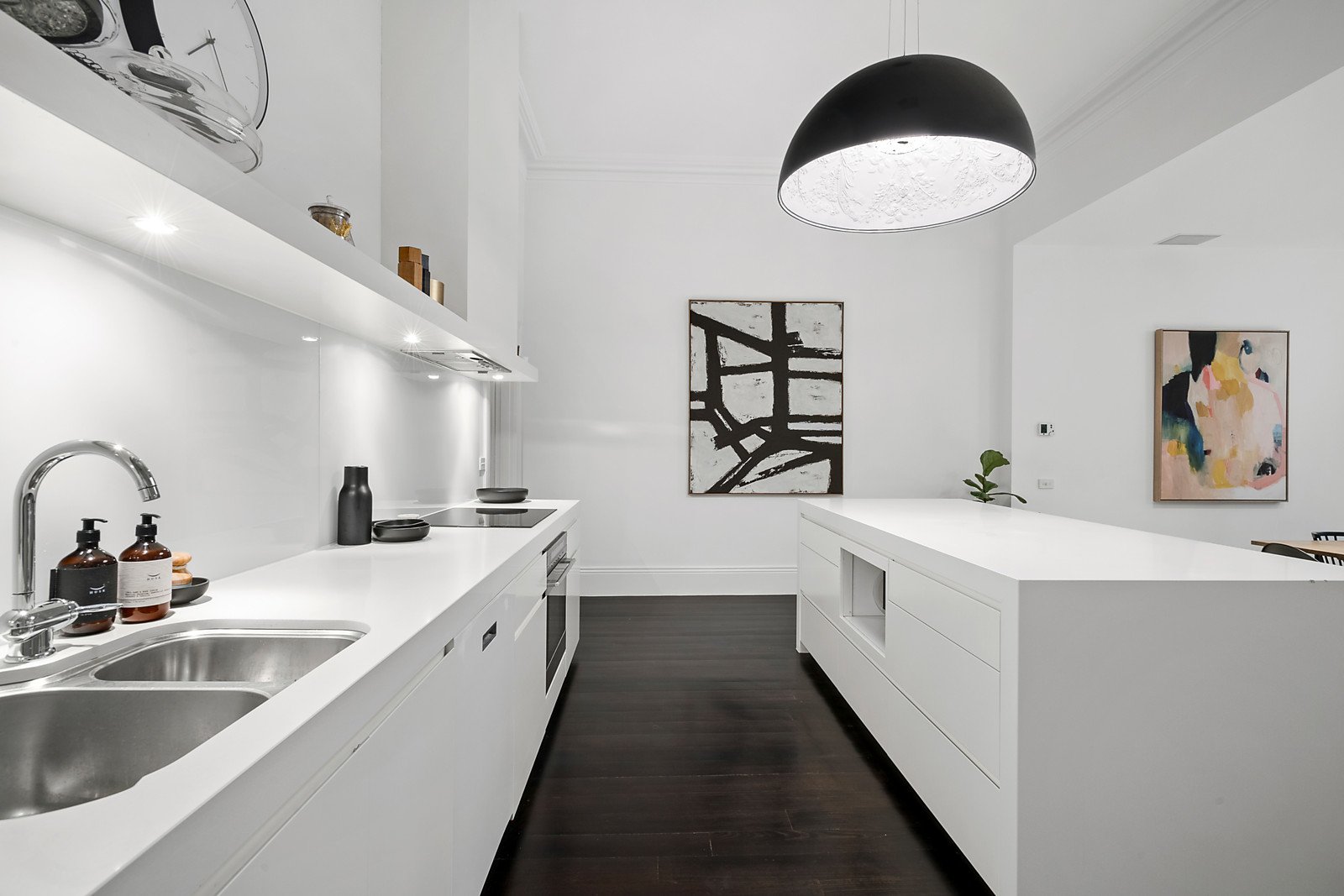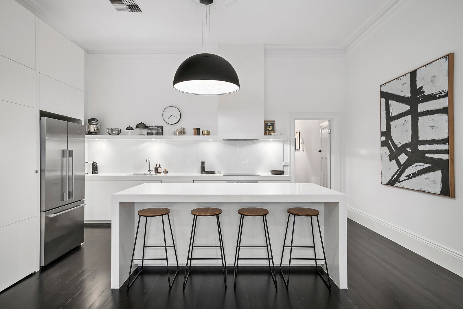 a stunning contemporary interior. Subtle period attributes have been retained in an interior imaginatively renovated with attention to detail and designer styling including white with contrasting charcoal grey and black trimmed attributes plus a preferred northern side orientation providing loads of natural light to the home.