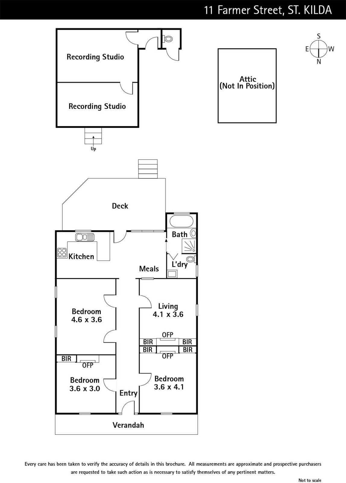 This unique 3 bedroom Victorian features a professional freestanding recording studio at the rear. Offering comfort for today with appealing potential for the future and set in a quiet cul-de-sac, footsteps from Fitzroy, Carlisle, Acland Street and J Duggan Reserve. The traditional spaces and recording studio create exciting scope for living and working from home. A central hall featuring floorboards, picture rails and high ceilings introduces three bedrooms and a living room leading to kitchen and meals area with adjacent bathroom and laundry. Outside, a spacious deck and garden complete with bungalow (currently set up as a recording studio) and ideal for anyone looking to custom design their own space. Enhanced by car parking at the rear, seconds from public transport, this Farmer Street home invites you to reap the immediate benefits of St Kilda living or harvest the opportunity to improve or develop (STCA).