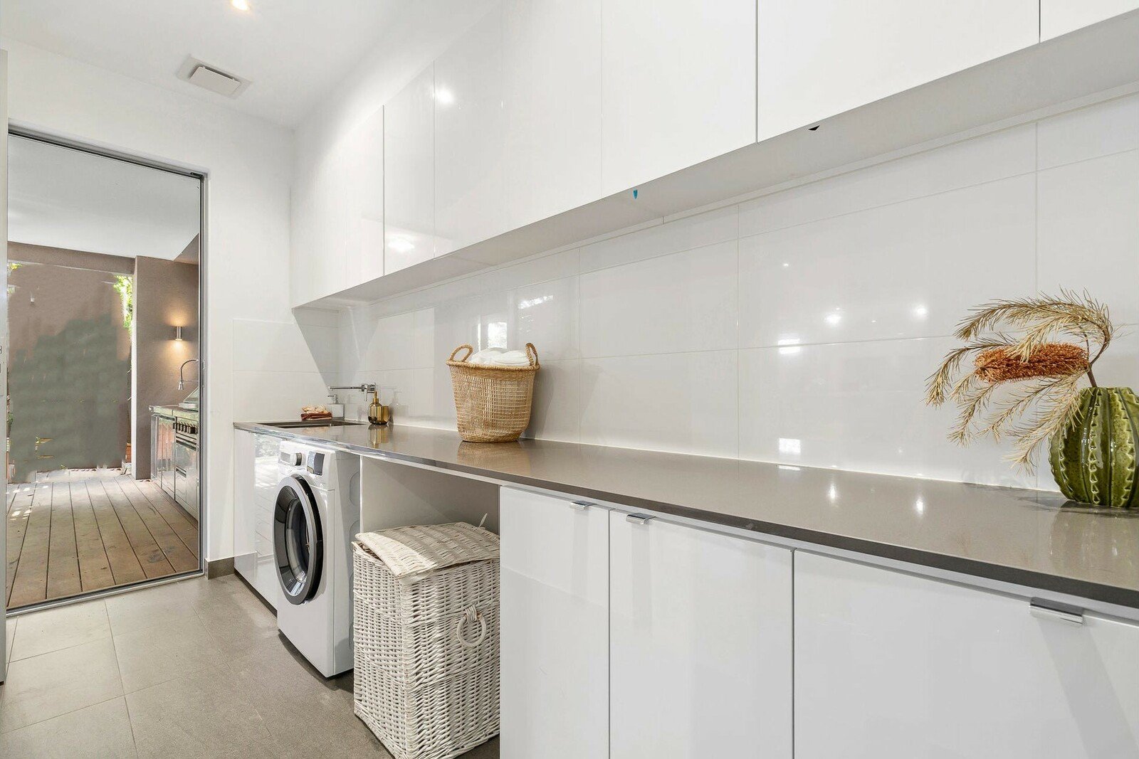 This impressive five bedroom residence spans across two levels, embodying both distinctive design and a prime location. Enhanced by contemporary finishes and timber floorboards, the spacious open plan living and dining area seamlessly flows into a fully equipped kitchen featuring a large island bench, stone countertops, ample storage, European appliances, and a butler's pantry. Floor-to-ceiling windows extend this entertainment space to a generous alfresco area with an outdoor kitchen and low maintenance synthetic turf, perfect for hosting gatherings. Completing the ground floor is a powder room, large laundry, and fifth bedroom or extra large home office.