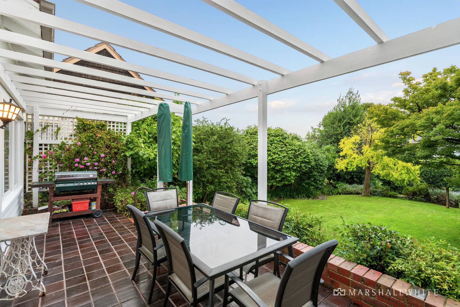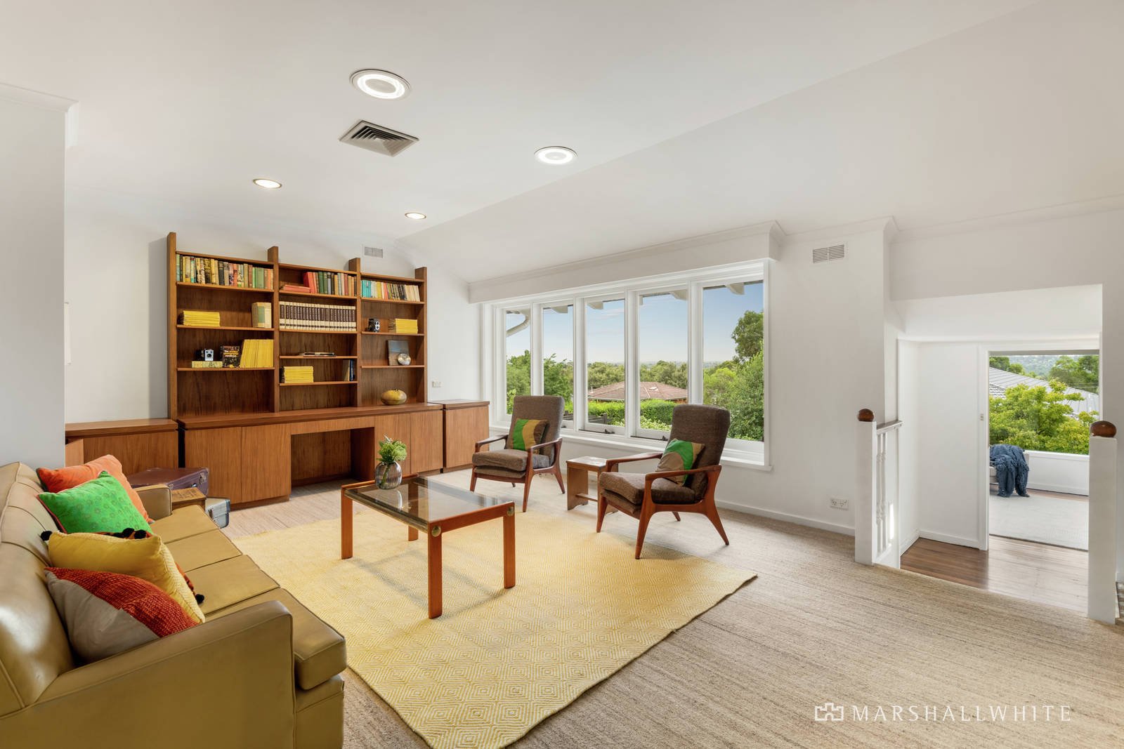 The wide entrance hall flows through to a generous sitting room, sunny living room, well-appointed kitchen with casual dining area and a light-filled dining room overlooking the garden and large north-facing terrace. On the level below, an evocative stone-walled billiards room with wine cellars also opens to the garden. An abundance of versatile family accommodation comprises two downstairs bedrooms and a bathroom, while upstairs there are three additional bedrooms with robes, a study or 6th bedroom, family bathroom and expansive retreat/rumpus room enjoying picturesque views to the ranges.