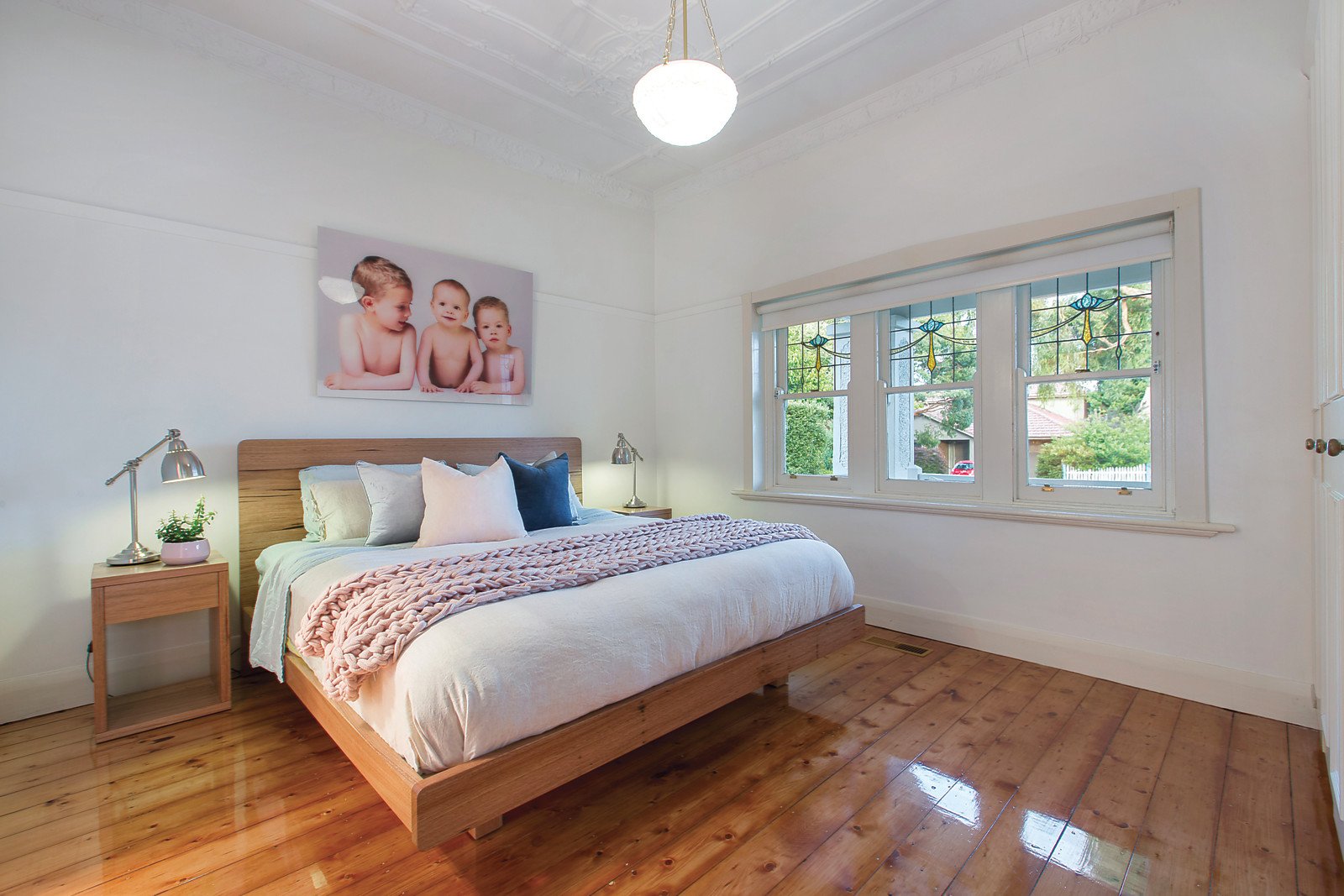 A classic interior adorned with decorative ceilings, OFPs and polished floorboards features an elegant sitting room or 4th bedroom, main bedroom with built in robe and ensuite, a second double bedroom and third bedroom with built in robe.