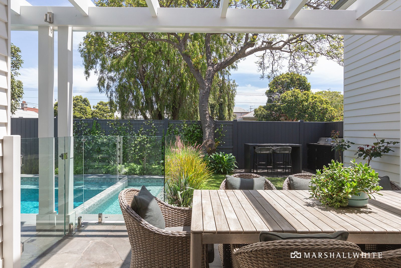 Additional attributes include a host of preserved traditional features, sash windows, cornicing, high ceilings and a graceful return verandah, alongside conveniences such as hydronic heating, split system cooling, bespoke cabinetry and abundant storage, separate laundry, and parking for two completing this unmissable lifestyle opportunity, just moments from St Vincent Gardens, Albert Park cafes, South Melbourne Market, Beach and City.