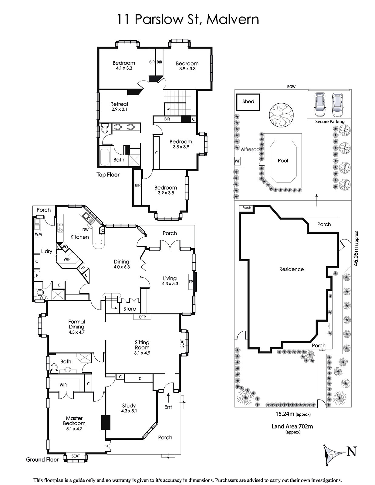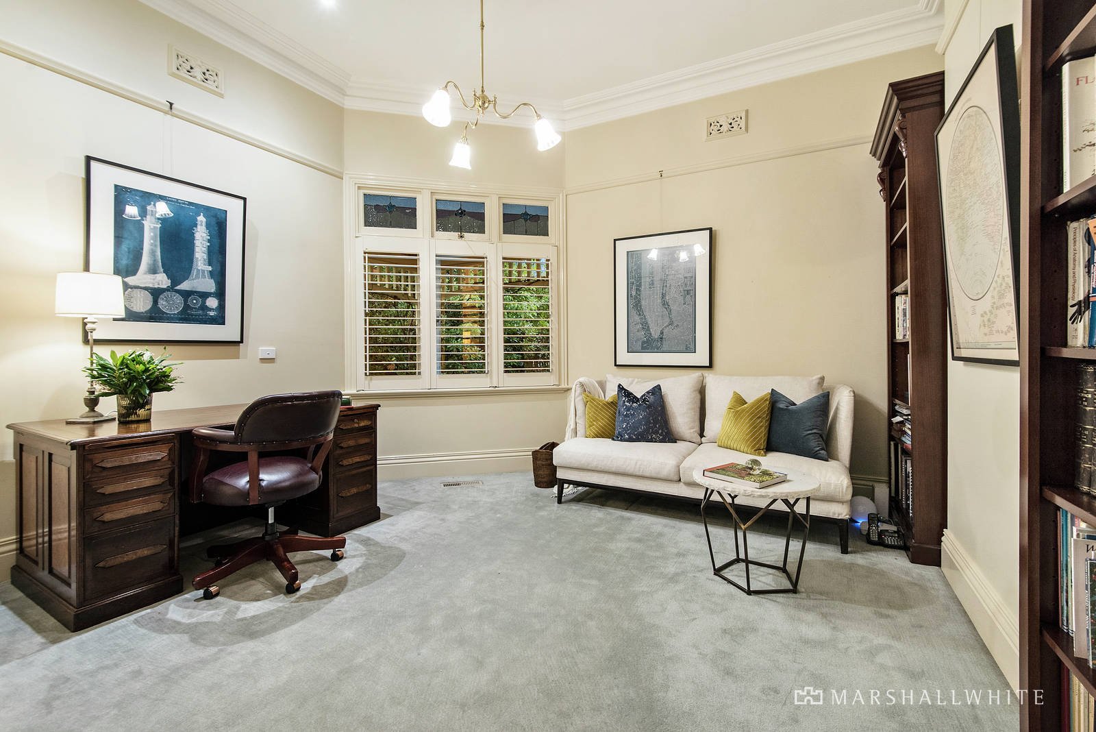 Framed by a wide return verandah, the welcoming entrance hall introduces an elegant sitting room with fireplace and formal dining room all graced with Baltic pine floors, high ceilings and leadlight windows. Timber floors flow through the light-filled casual dining room, superb granite kitchen and generous living room with a gas fireplace opening out to the deep private leafy garden with extensive paving, a picturesque pool and off street parking for 2 cars via the rear lane. A gorgeous main bedroom with window seat and walk in robe, two stylish bathrooms and a spacious home office are downstairs while upstairs there is the perfect children's zone with four additional bedrooms with built in robes, a family bathroom and a retreat.