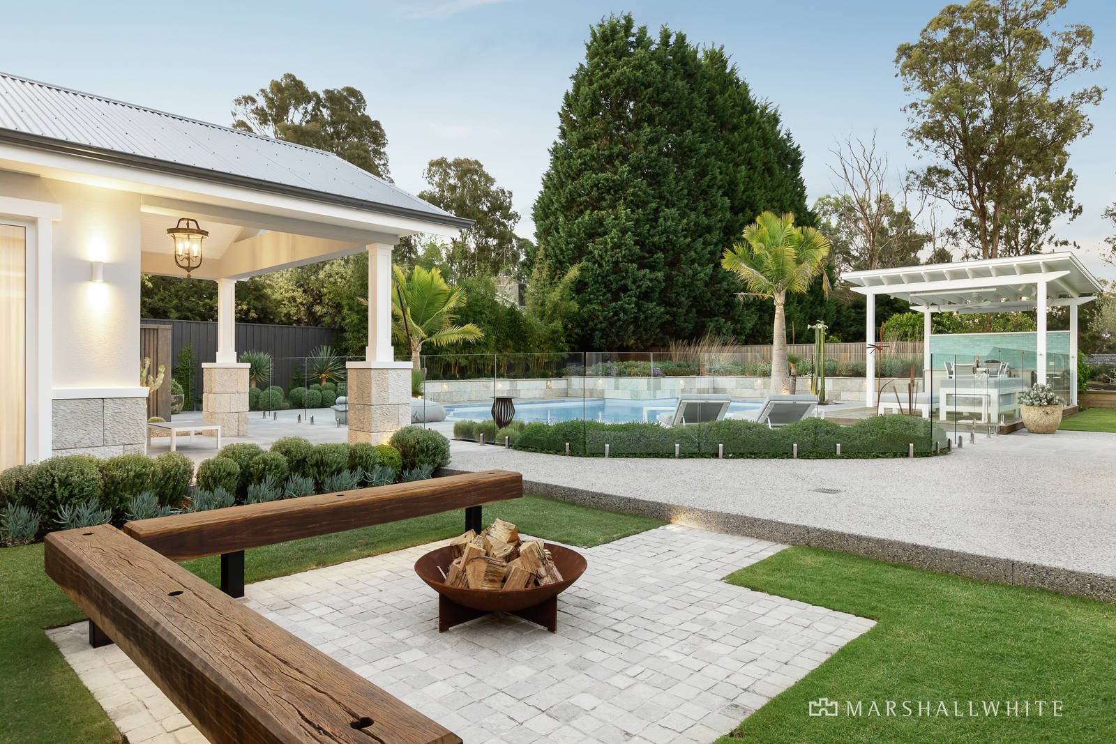 Architect designed landscaping features garden lighting, separate entertaining zones, and a central firepit courtyard with reclaimed timber seating which is sure to impress. A freestanding studio complete with bathroom, sauna and WIR provides versatility to be a fifth bedroom for teenagers or guests, a pool house, gym, or large home office.