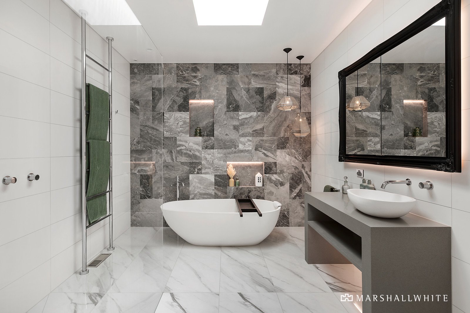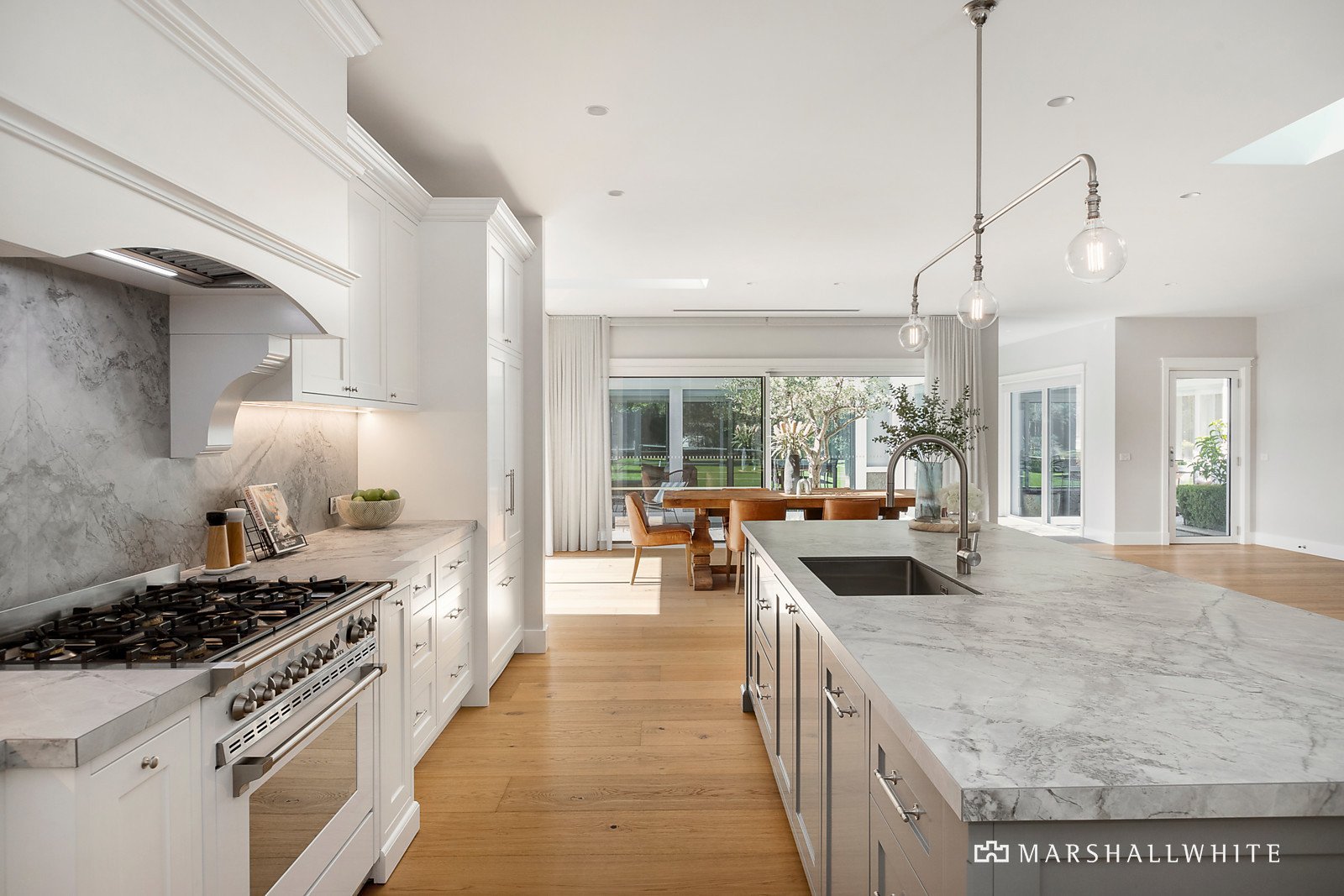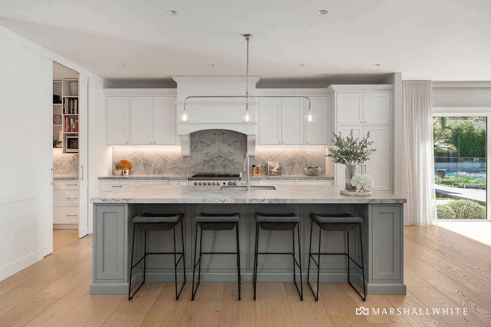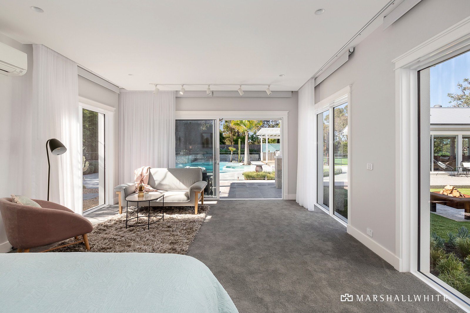 The opulent hotel-style master suite is zoned for privacy and offers an incredible outlook with direct access to the impressive pool and alfresco. Including designer ensuite that brings the outdoors in and custom dressing room. This private retreat offers the ultimate parent's hideaway. There is also a separate home office and three additional bedrooms, serviced by the main bathroom with marble feature wall and freestanding bath.