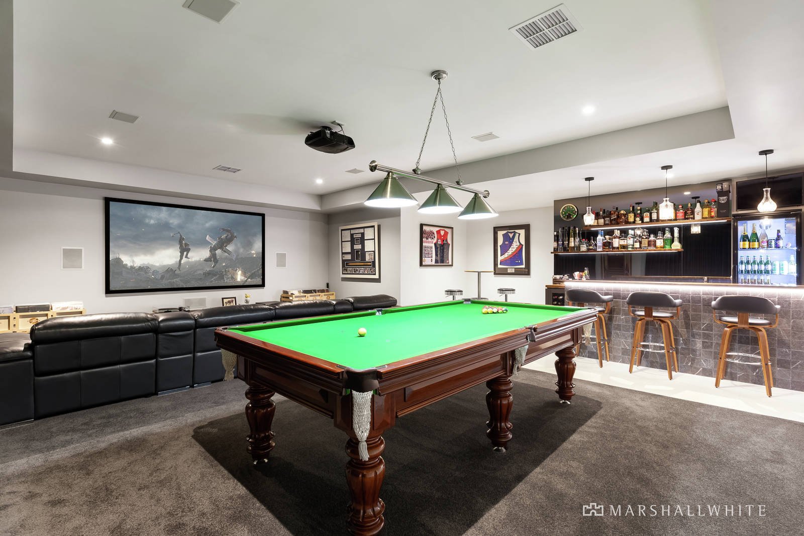 Undoubtedly, the heart of this magnificent home is the lavish open plan living area that showcases lush vistas through expansive windows. It comprises a large meals area, a relaxed family room with gas fireplace, and bespoke kitchen boasting an abundance of storage, stone benchtops, butler's pantry, 90cm Italian oven and integrated dishwasher and fridge/freezer. This space connects to a separate recreation/media room with a custom-built bar and space for both a billiards table and home theatre.