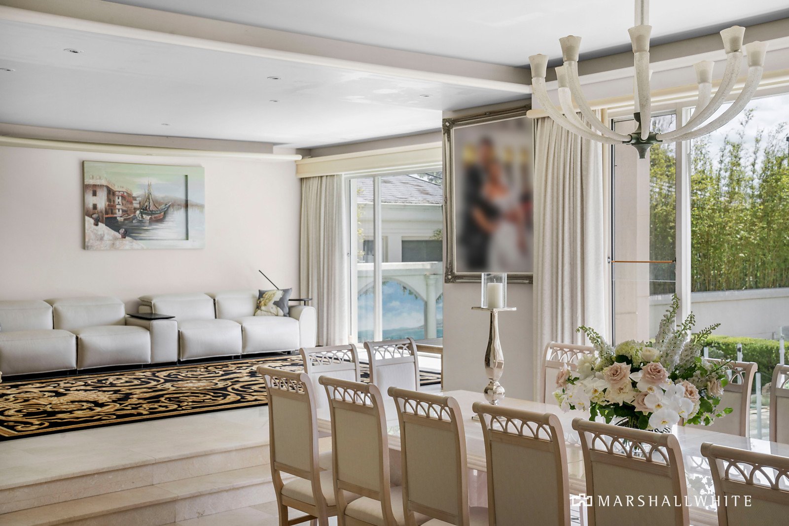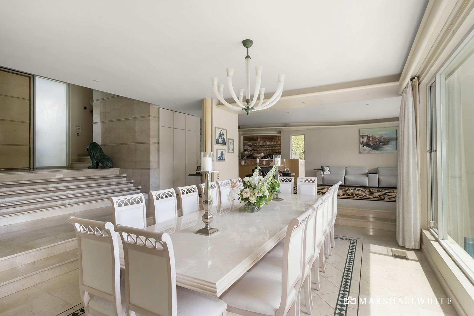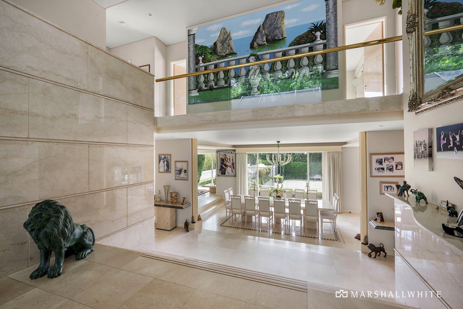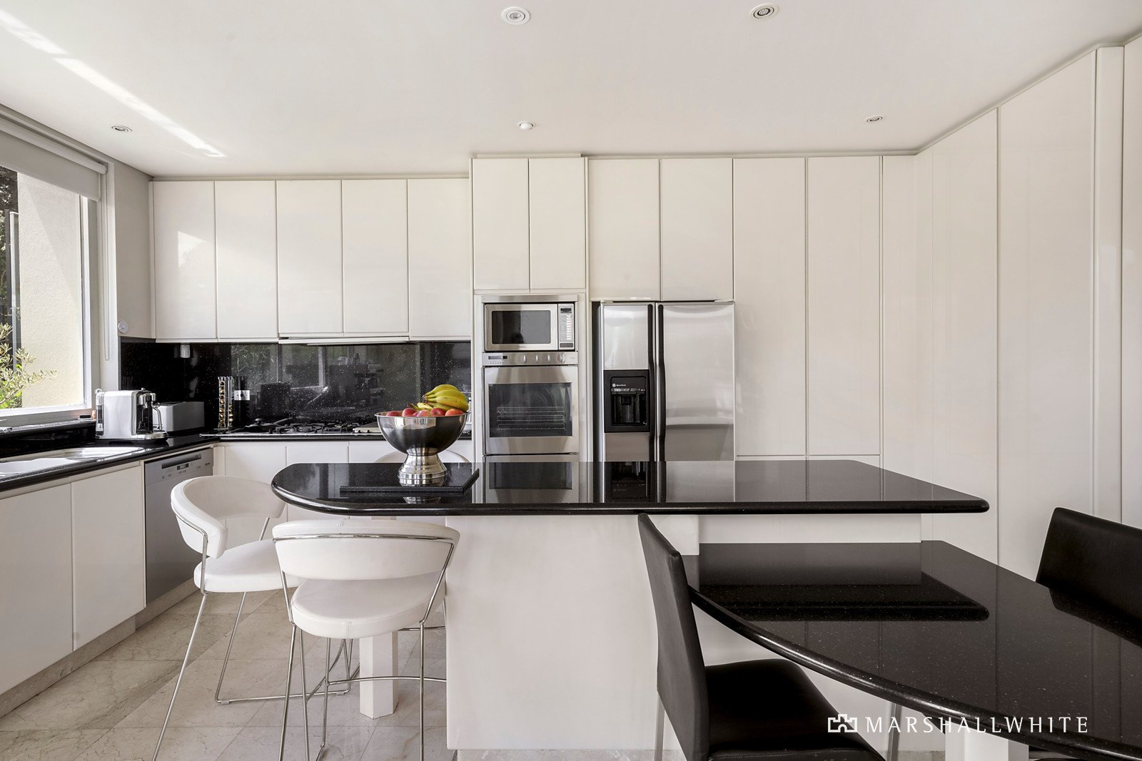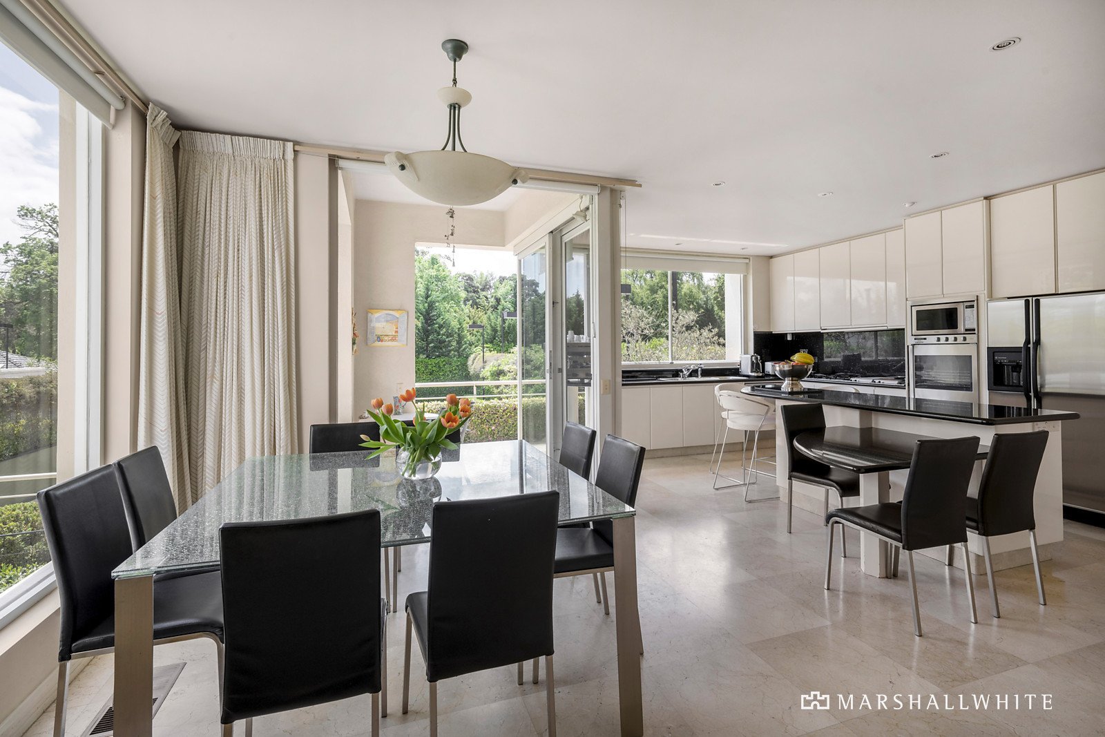 The entrance hall sweeps on to the formal dining room, the expansive formal lounge with built -in bar enjoys northern views. Off the lounge, double doors reveal a private second sitting room/den with a tranquil front garden outlook. The granite and Gaggenau-equipped kitchen with emporite cabinetry, opens to a sun-drenched deck and sheltered outdoor entertainment area.