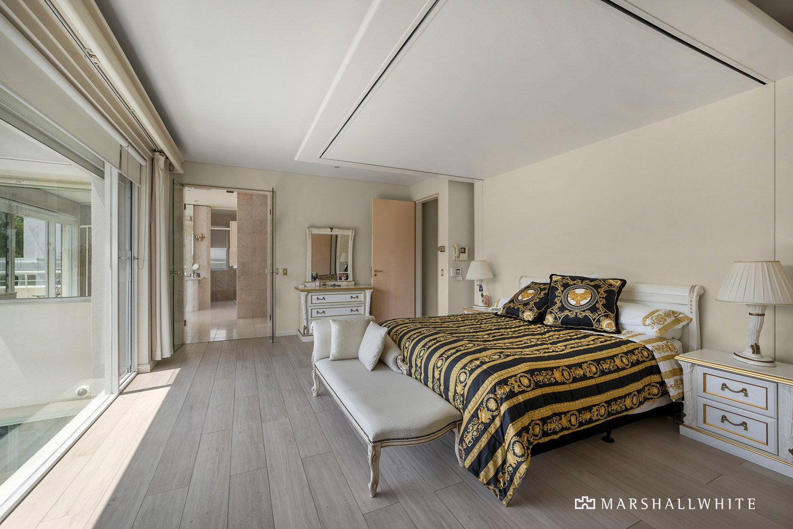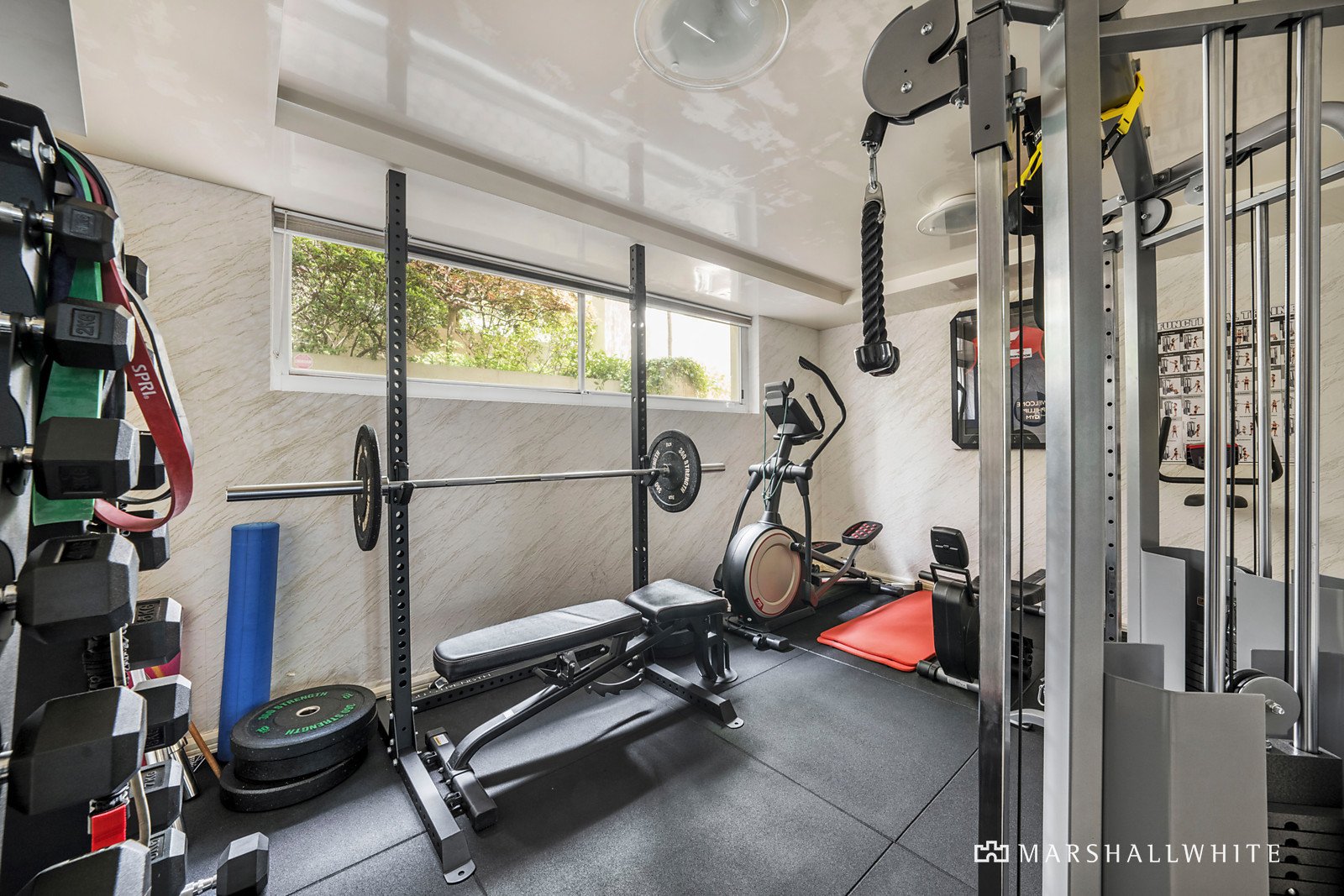 The lower level is given over to a guest bedroom/gym with adjoining bathroom and sauna which are also accessible from the pool and outdoor entertaining area.