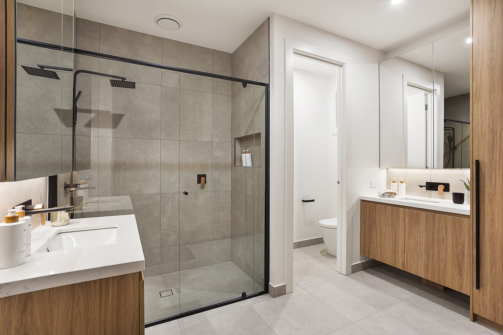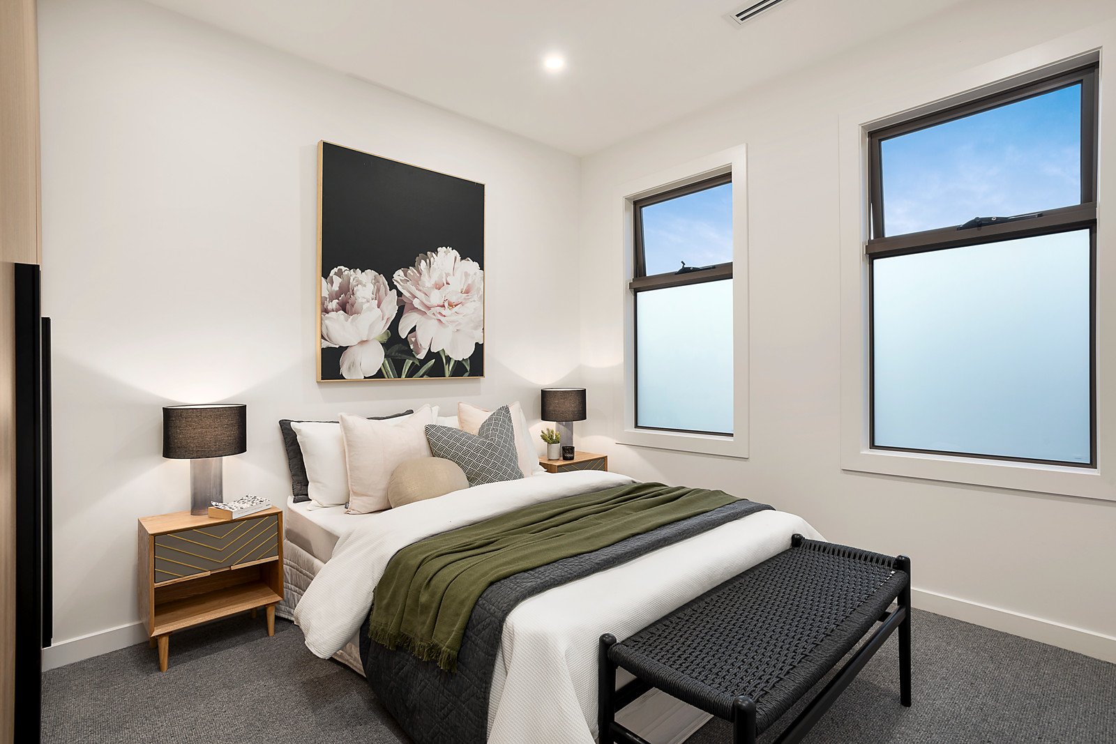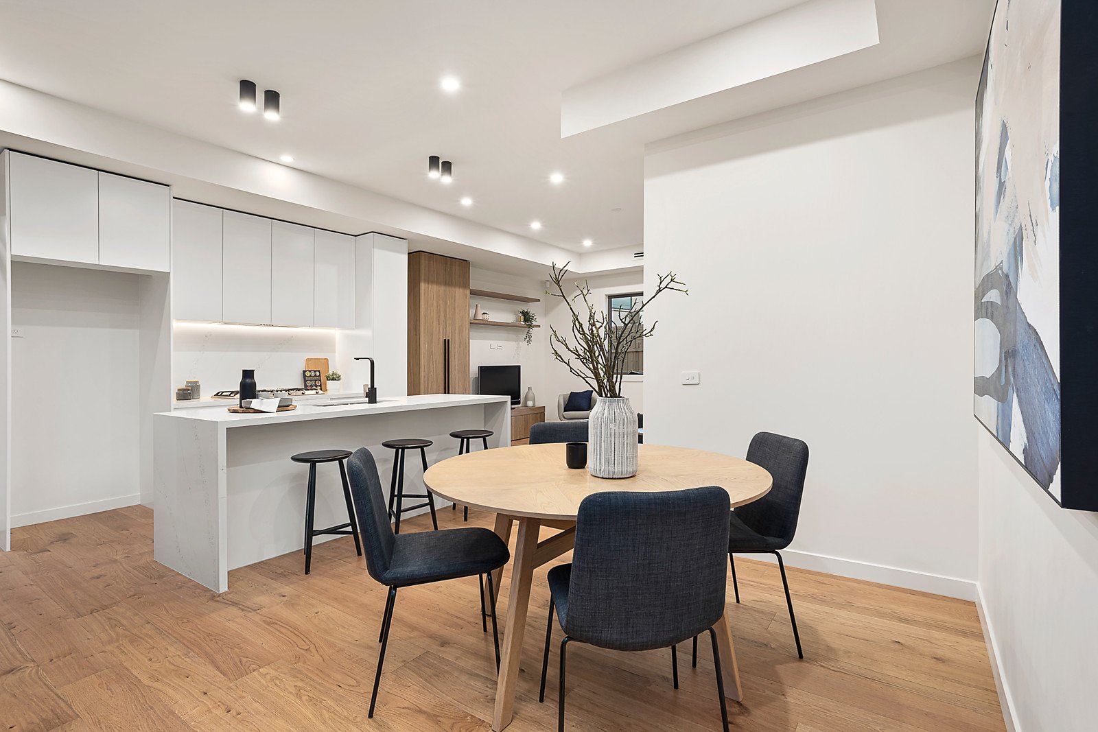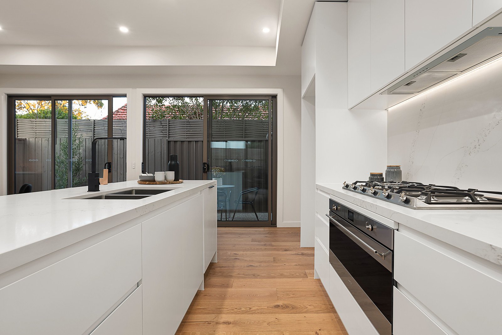 Brand new townhouse showcases easy-care quality and style in a low-traffic location, minutes to parks, trains and shops. Prime street-front position in a boutique block offers a new era of lifestyle living. Three-bedroom and study residence has lounge and dining areas enhanced with engineered oak floors, custom cabinetry, and access to a private courtyard, perfect for dining outdoors. Streamlined and well-designed, the Smeg kitchen has a 90cm oven and gas cooktop, marble-inspired stone benches and underbench lighting. There's every feature you want in a premium home, including an upstairs study zone with built-in desk and storage, Daikin ducted air conditioning, security alarm, video intercom entry, ducted vacuum system, and loop pile carpet. All bedrooms have ensuite bathrooms featuring black tapware with brushed metal accents and a premium fitout. Admire the landscaped front garden with large-format pavers and pebble inserts, love the block-fronted exterior, and look forward to living in this convenient location.