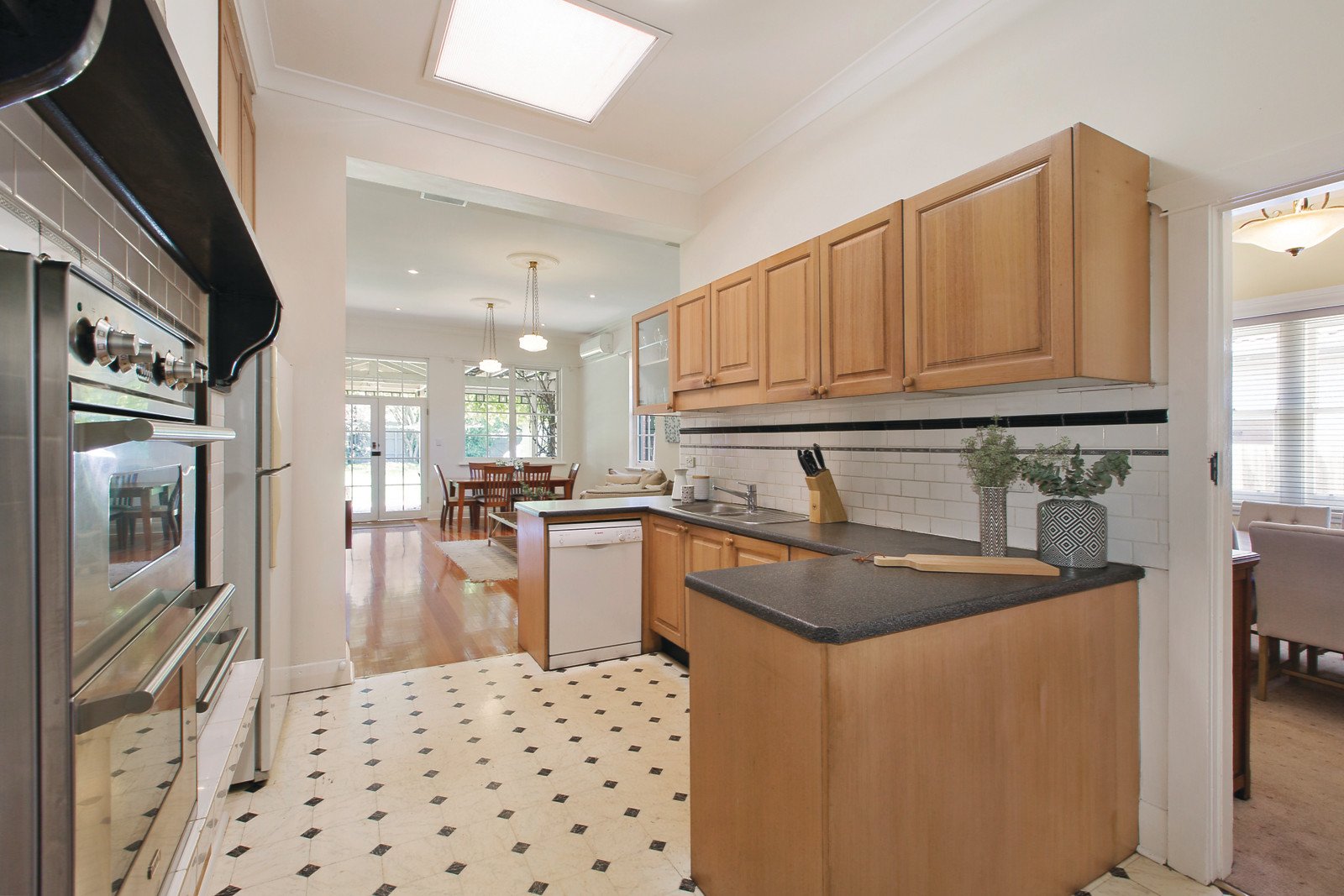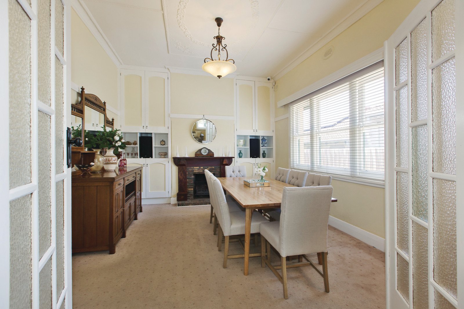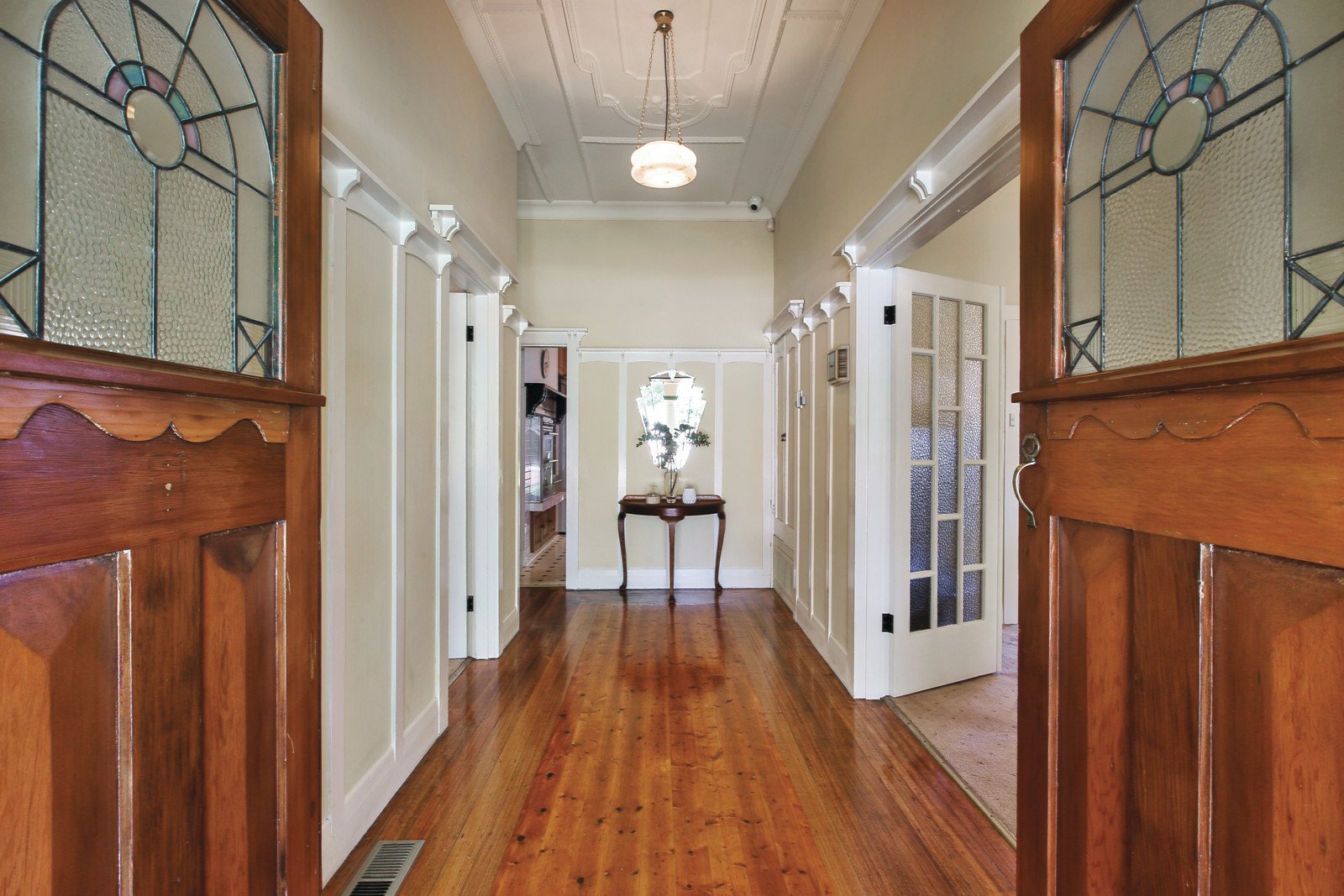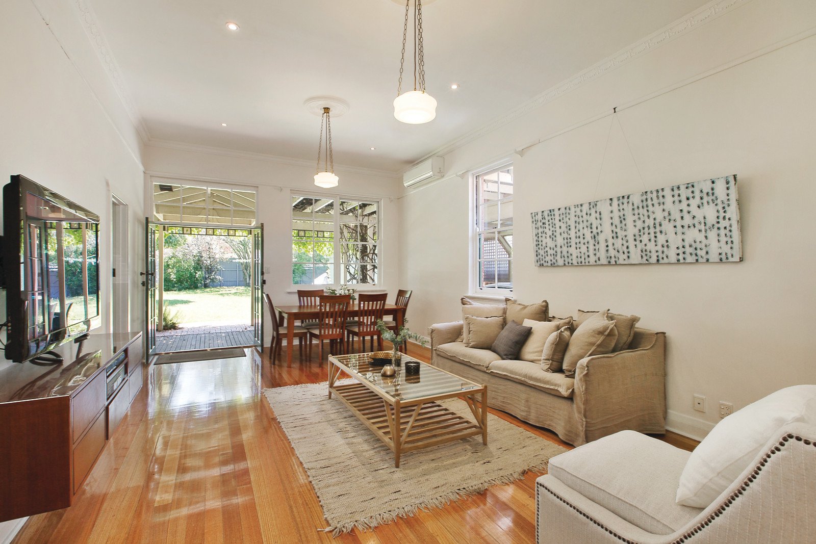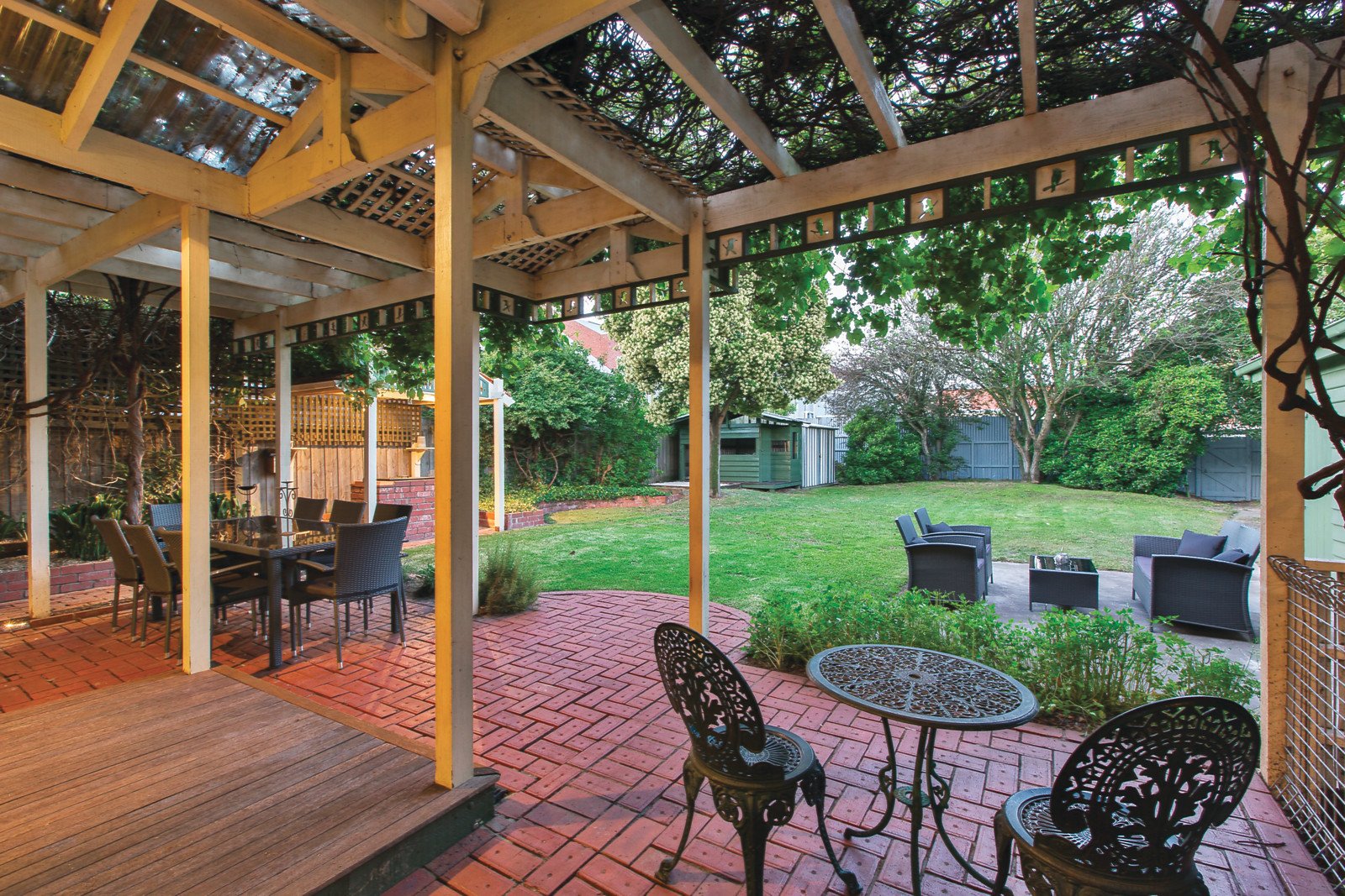 Generous proportions accentuated by ornate 3m ceilings define the wide central hall, elegant sitting room and formal dining room with an open fireplace. The four spacious bedrooms are accompanied by a period style bathroom and laundry with 2nd bathroom. High ceilings are maintained through the modern well appointed kitchen and light-filled living and dining room opening to the deep north-facing private garden boasting a large vine covered entertaining terrace and gas BBQ.