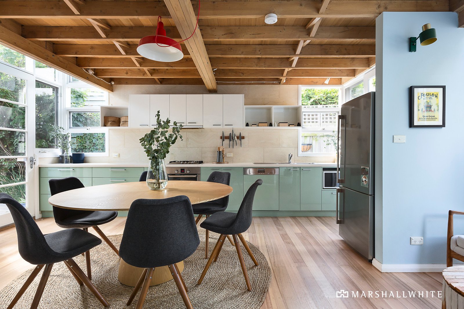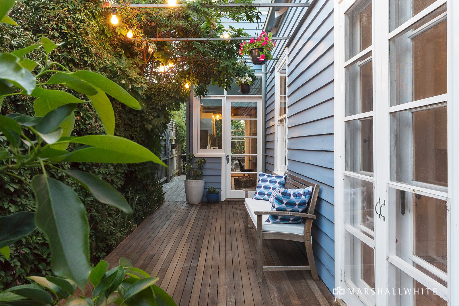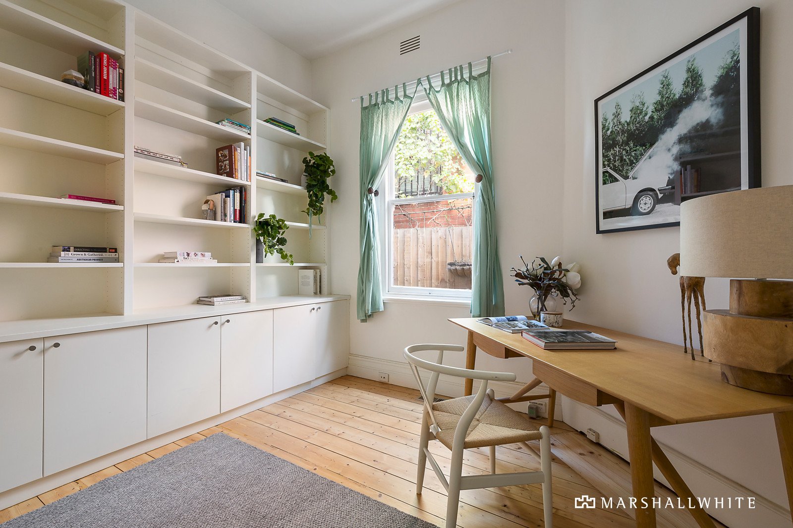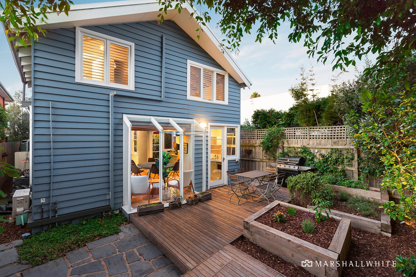 Traditional period features including high ceilings and Baltic pine floors are displayed in the entrance hall and the generous living room with an open gas ornamental fire and French doors to a side decked garden. Beneath timber ceilings and beams, the open plan dining room with a gourmet kitchen boasting stone benches and Miele appliances opens to the private leafy landscaped garden with entertaining decks and built-in seating. The upstairs master bedroom with vaulted ceiling, study nook, built-in robe and designer en-suite with spa bath, are complimented downstairs by two additional gorgeous bedrooms with built-in robes, a home office or 4th bedroom and a stylish, freshly renovated bathroom.