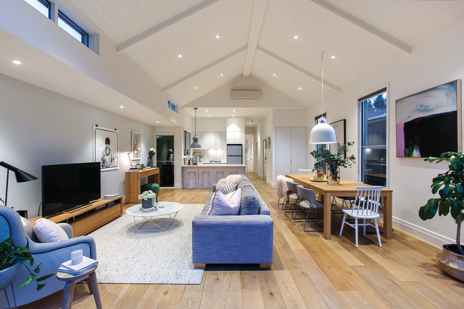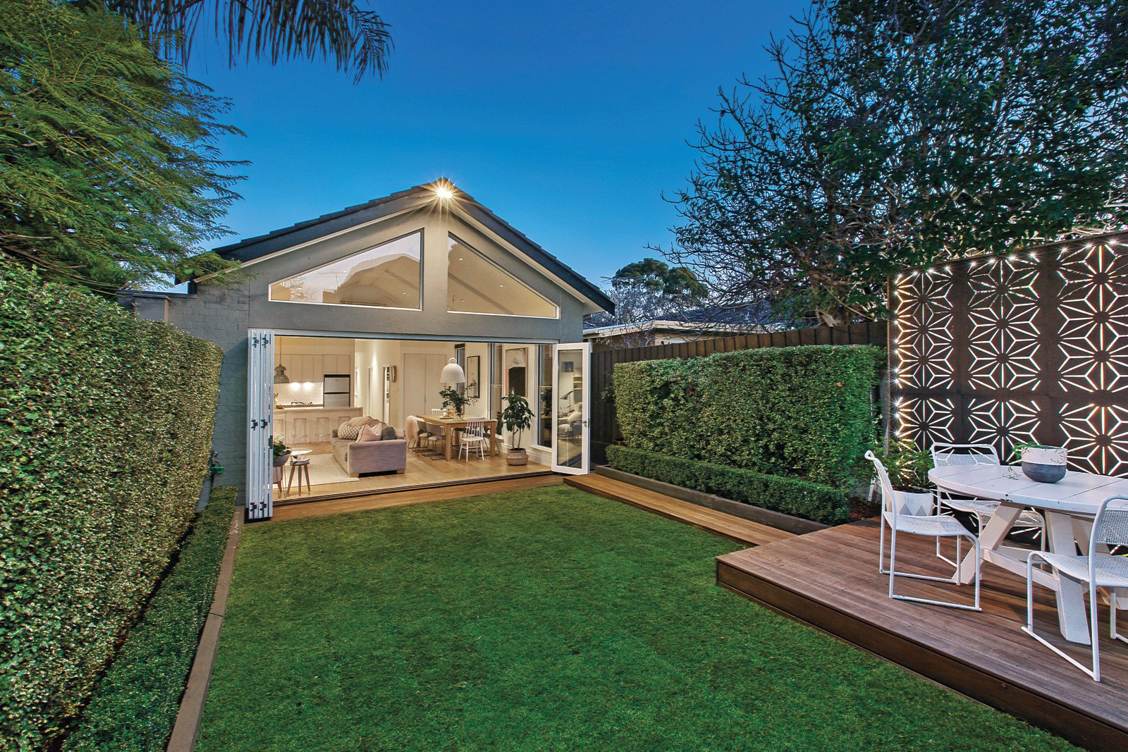 A picturesque front garden and an entrance hall featuring wide oak floors create an inviting first impression. Designer touches continue to impress through the beautiful main bedroom with walk in robe and chic ensuite, two gorgeous double bedrooms with built in/walk in robes and a stylish central bathroom with freestanding bath. Vaulted ceilings accentuate the generous scale of the living and dining room and premium stone kitchen boasting Bosch appliances and a butler's pantry. Bi-fold doors open the interior spaces to a stunning landscaped sunny private garden with striking al fresco deck surrounded by a bespoke backdrop.