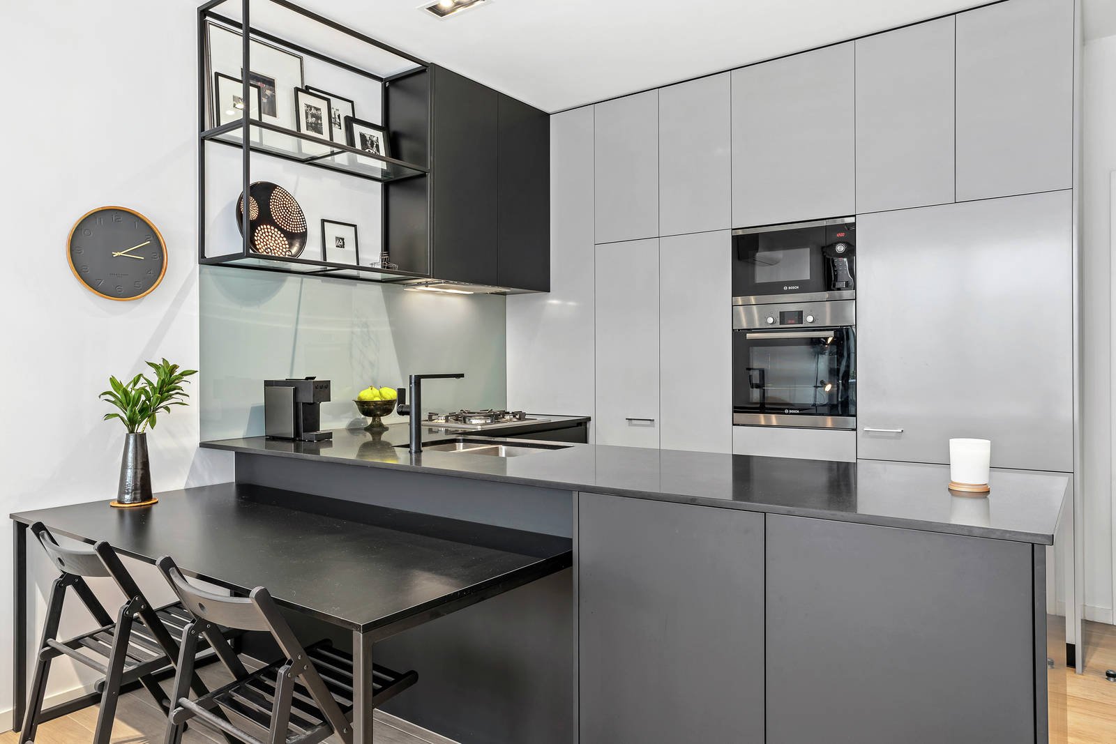 This chic first floor, two bedroom apartment delivers the very best in luxurious living in a sophisticated complex standing out from the crowd in the leafy, tree-lined Auburn Grove. Developed by the highly regarded Lazzcorp Property Group, renowned for its dynamic and distinctive design concepts. A sleek, light-filled interior features wide oak flooring through a generous open-plan living, dining area and stylish black granite kitchen equipped with prestige Bosch appliances, including a microwave, oven, stainless steel cooktop and integrated dishwasher opening through floor-to-ceiling sliding doors to an inviting balcony - ideal for outdoor entertaining or relaxation. The main bedroom features a wall of mirrored robes and study nook, a second bedroom could also be used as a study if desired; plus the sparkling fully-tiled bathroom includes a concealed laundry. Other features of this superb apartment include secure video intercom entry, lift access, R/C air conditioner plus one basement car space & storage locker.