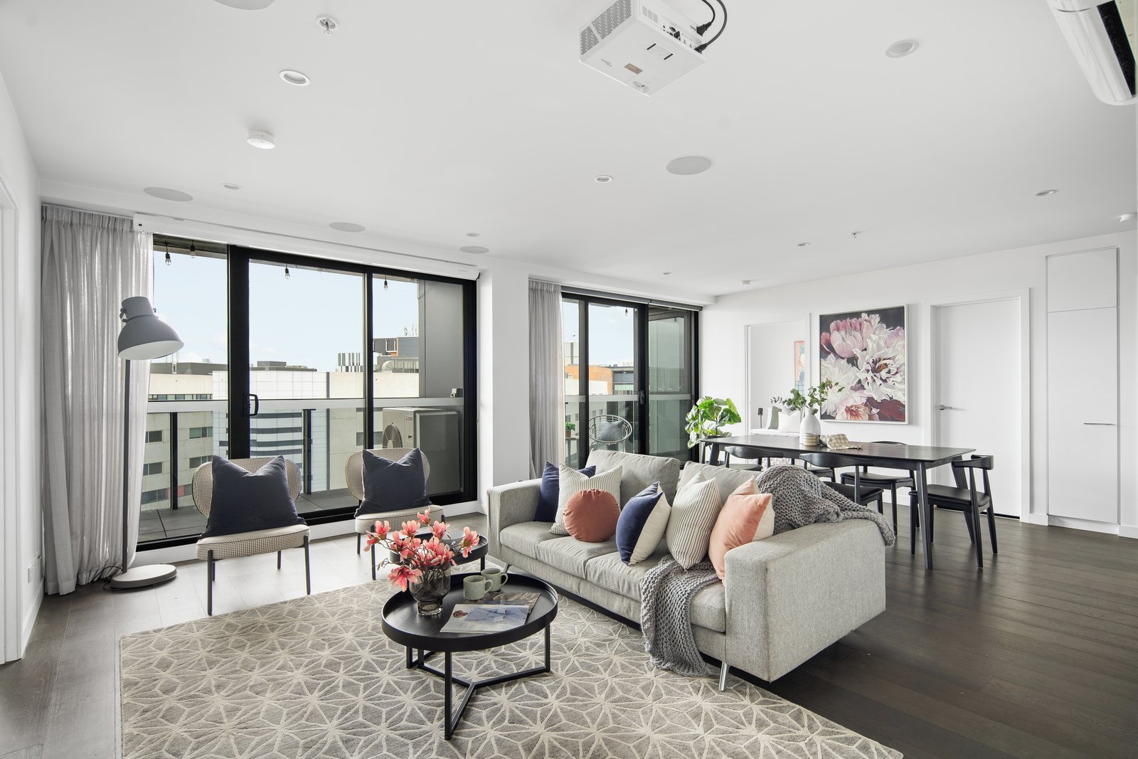 Positioned within THE PRINCIPAL, one of North Melbourne’s most sought-after residential buildings, this expansive sub-penthouse residence offers an exceptional standard of inner-city living, combining house-like proportions with premium finishes and rare lifestyle features.