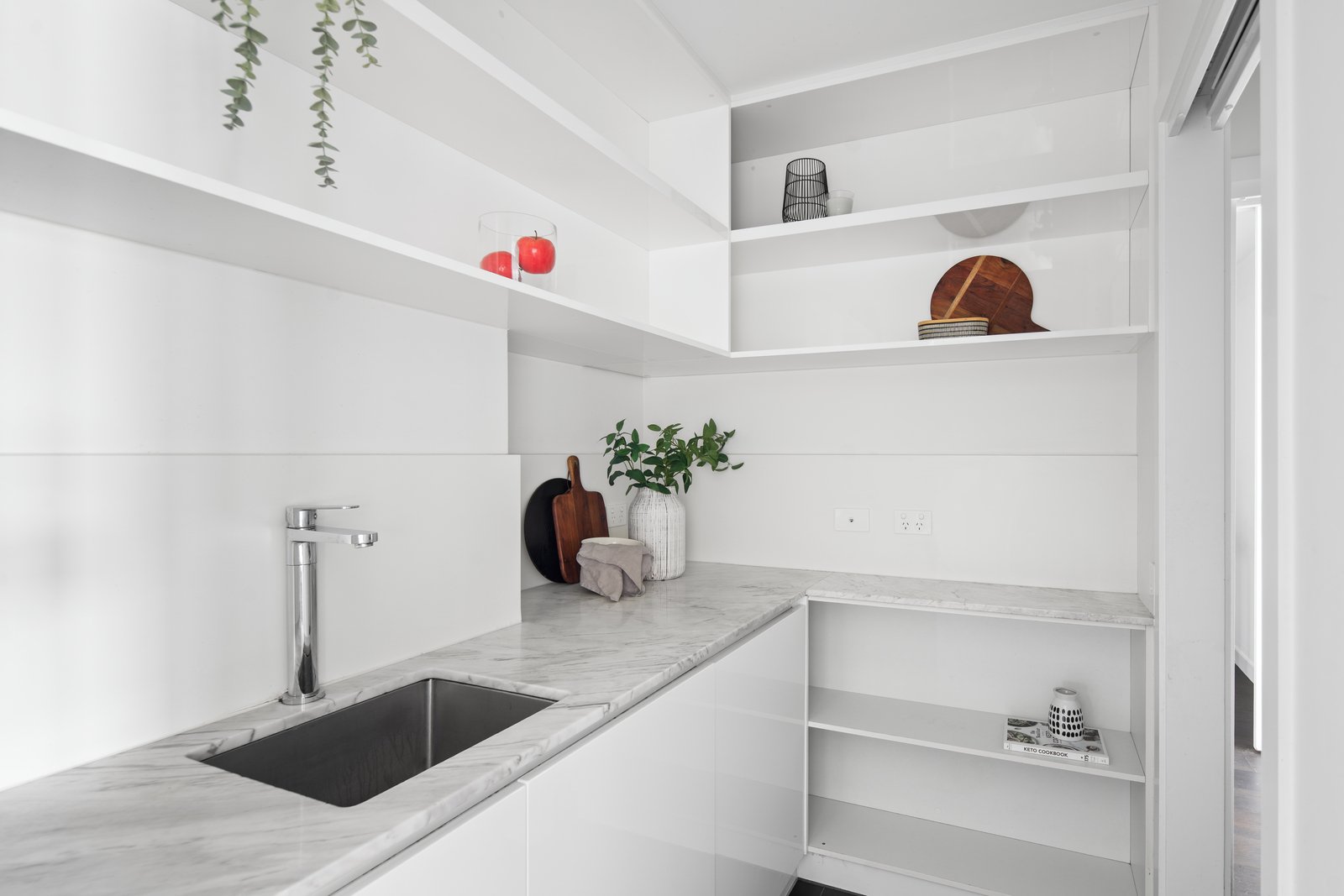 The kitchen is truly a standout, featuring a marble island bench, premium Ilve appliances, and a rare integrated gas teppanyaki grill. A fully equipped butler’s pantry (walking pantry) with second sink and dishwasher provides additional preparation space, ideal for entertaining or day-to-day convenience. A built-in wine fridge and Zip tap (hot, cold and sparkling water) further elevate the experience.