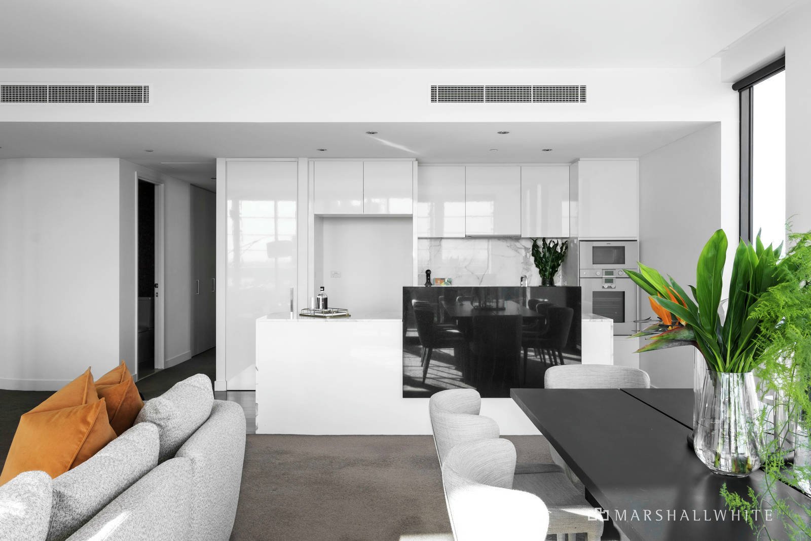 Defined by seductive curves, the wide entrance hall introduces an expansive open plan living and dining room with a concealed fitted study and sublime premium kitchen appointed with Gaggenau appliances and Calacatta marble benches. Stacking glass sliders open to a fabulous full width west-facing wintergarden with remote louvres offering wonderful views and the perfect venue for year-round al fresco dining. The main bedroom with designer en suite and walk in robe also opens to the wintergarden. Two additional double bedrooms with robes share a stylish bathroom.