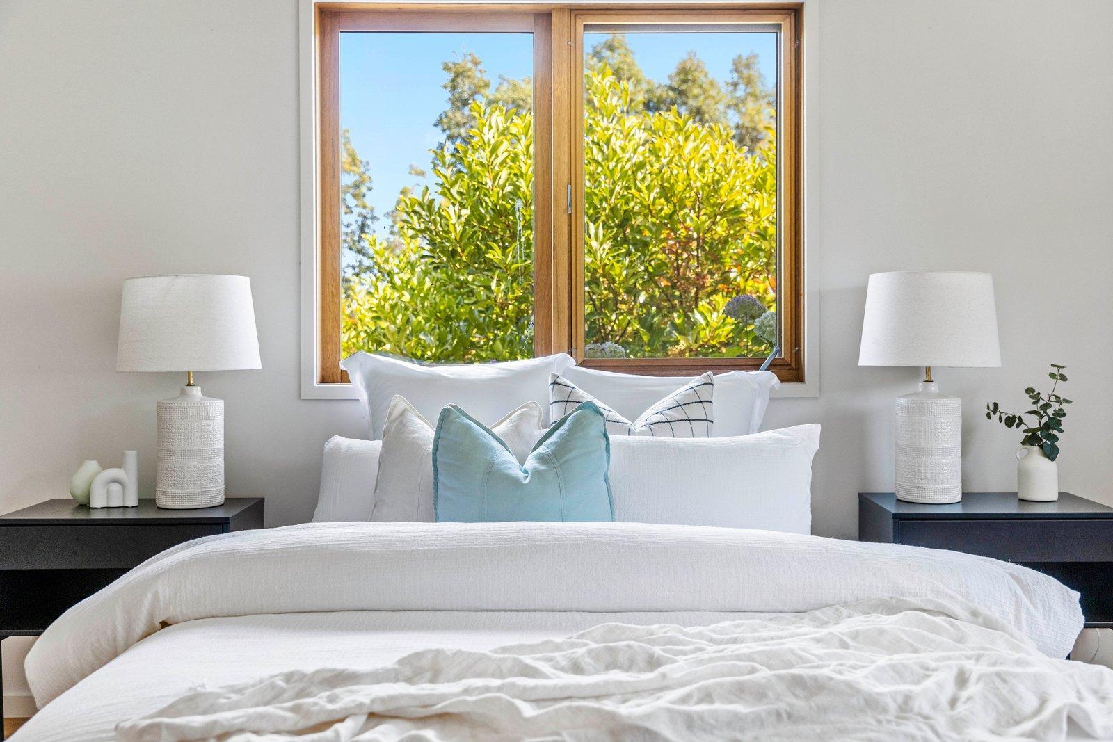 As you meander down the treed driveway, the picturesque outlook unfolds, while inside, soaring ceilings and recently repolished Messmate timber floors create an ambiance of tranquillity and easy-care living. The private main bedroom offers ample space for relaxation, featuring two walk-in robes and a deluxe twin ensuite. Three additional bedrooms are nestled within the accommodation zone, accompanied by a stylish main bathroom, separate powder room, and a spacious family laundry.