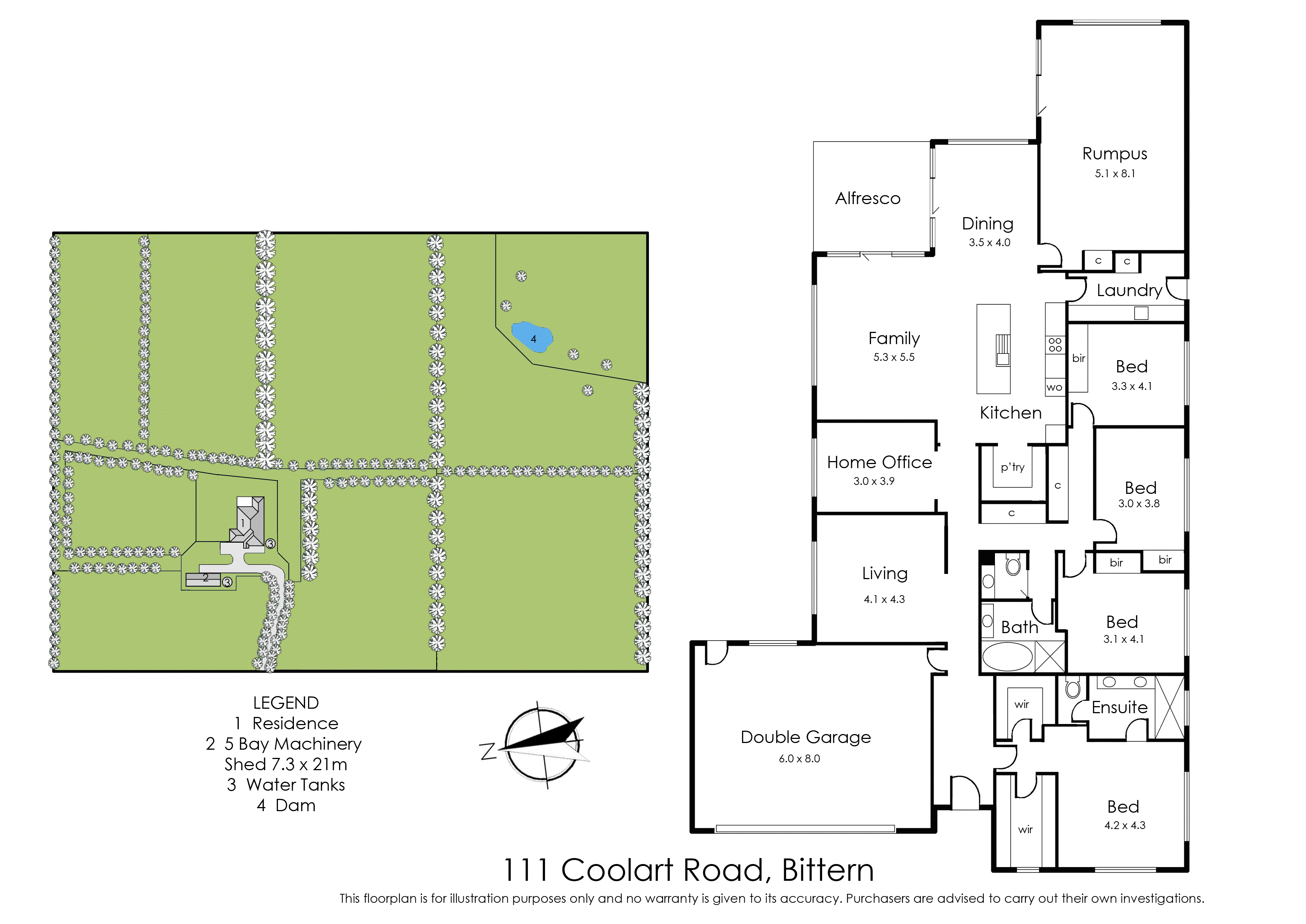 Additional infrastructure includes a five-bay machinery/hay shed with one secure bay and a double remote garage with extra room and internal access. Only moments from Peninsula Link, with just a one-hour commute to Melbourne, this remarkable property is complete with a formal lounge, a vast recreation/rumpus room, a separate home office, ample storage space, split system heating/AC, and double glazing.