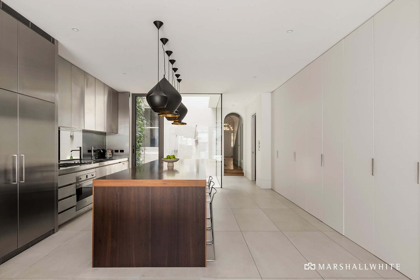 A breathtaking achievement in design by award-winning architects BE and featured in numerous publications including Design Milk, this glorious balconied Victorian residence's magnificent interior dimensions and idyllic outdoor domain with pool are a celebration of natural light, understated luxury and family functionality. A modern interpretation of traditional Victorian features is achieved by vaulted ceilings with custom designed plasterwork through the formal rooms and hall as well as stunning glowing agate leadlight windows that surround the front door. Extra wide oak floors flow through the arched hall, exquisite formal dining room with a custom designed gas fire and refined sitting room with a gas fire. A seductive staircase leads up to the lavishly spacious main bedroom with gas fire, balcony offering views of Albert Park Lake parklands, walk in/built in robes and a marble mosaic en suite, two additional bedrooms with built in robes and a designer bathroom. A fabulous lush vertical garden, extending 2-storeys up, is a breathable green wall within a light-filled central courtyard accessed from the gourmet kitchen boasting stainless steel work-bench, Smeg appliances, integrated fridge/freezer and rich timber island with dining table for six. The expansive living room with a concealed study area and gas pebble fire opens through full height/width glass sliders to a large al fresco dining terrace with BBQ kitchen. A fully retractable roof and heaters create a year-round/all-weather outdoor dining space overlooking the picturesque west-facing landscaped garden and solar/gas heated pool. At the rear of the garden, there is a spectacular contemporary "stables" housing the double garage and above, a versatile self contained studio/4th bedroom or home office with vaulted ceiling, stylish bathroom and kitchen. Directly opposite Albert Park Lake parkland and metres to Armstrong Street's shops and cafes, the beach and schools, this absolutely beautiful home also includes an alarm, video intercom, hydronic heating, underfloor heating, RC/air-conditioning, Sonos, remote blinds, double glazing, attic storage, irrigation and outdoor shower.