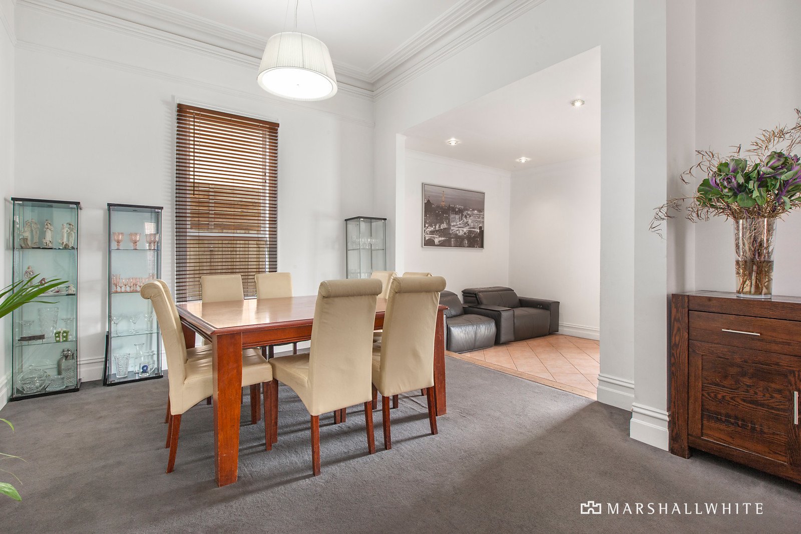 An imposing arched hallway introduces three double bedrooms with built in robes and open fires, a fourth bedroom with robes and a large immaculate bathroom with clawfoot bath. The generous formal living and dining rooms feature ornate high ceilings while the casual living and dining room is served by a well-equipped kitchen. The living area opens to the deep private garden with off street parking accessed via Peckville St.