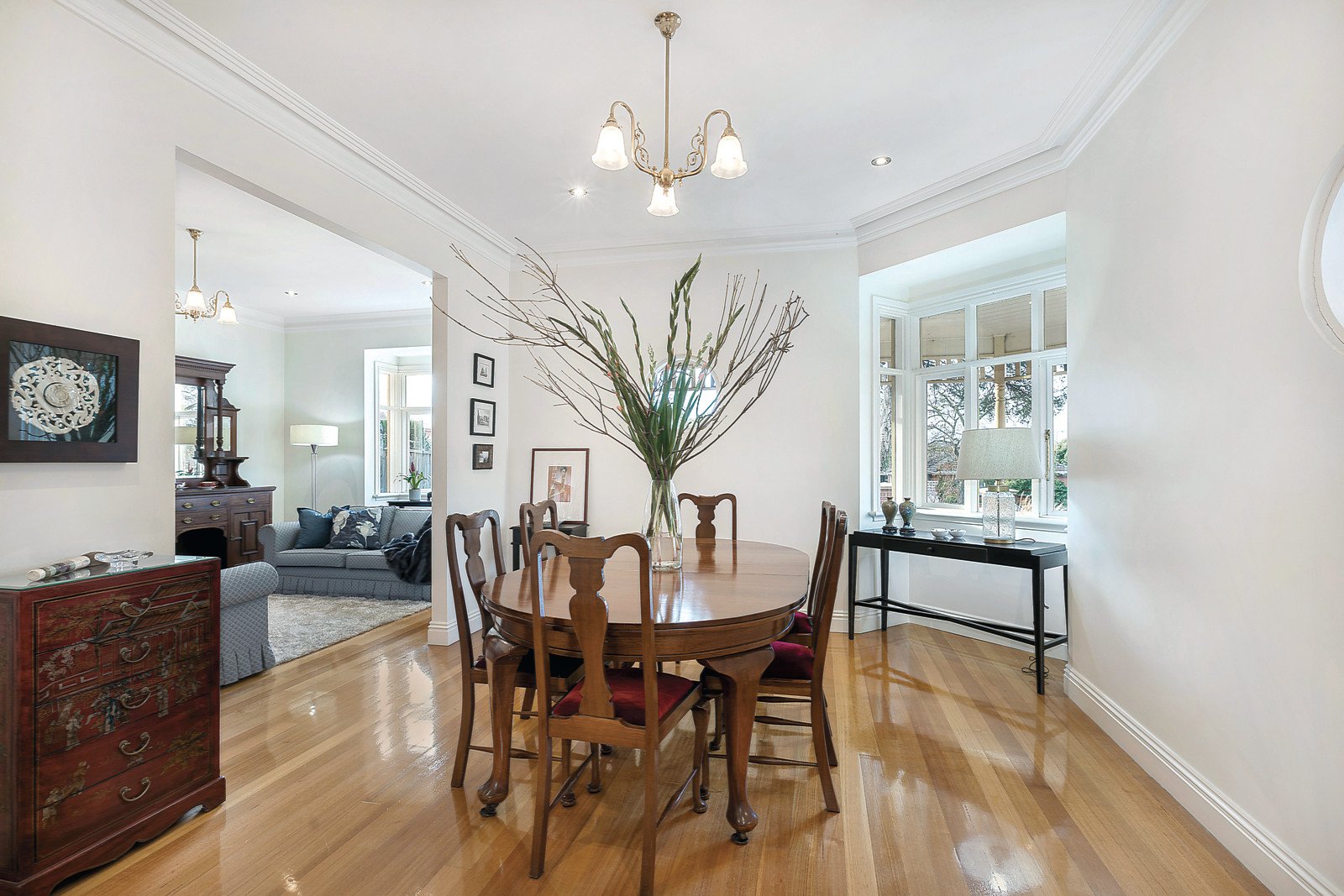 Exuding elegance this well designed and immaculately presented Federation-style family residence on 720sqm approx. benefits from contemporary design features combining the very best in traditional attributes with today's modern family lifestyle requirements. The luxurious sense of light, space and flowing living areas is immediately apparent on entry from a tessellated tile return verandah to a wide entrance hall with polished timber floors; leading to formal living and separate dining room, both with box bay windows, a study or fourth double bedroom, downstairs bathroom and laundry. The second storey features views to the northern ranges from a generous main double bedroom with WIR and bathroom-ensuite, plus two further double bedrooms, a retreat/study and second family bathroom.