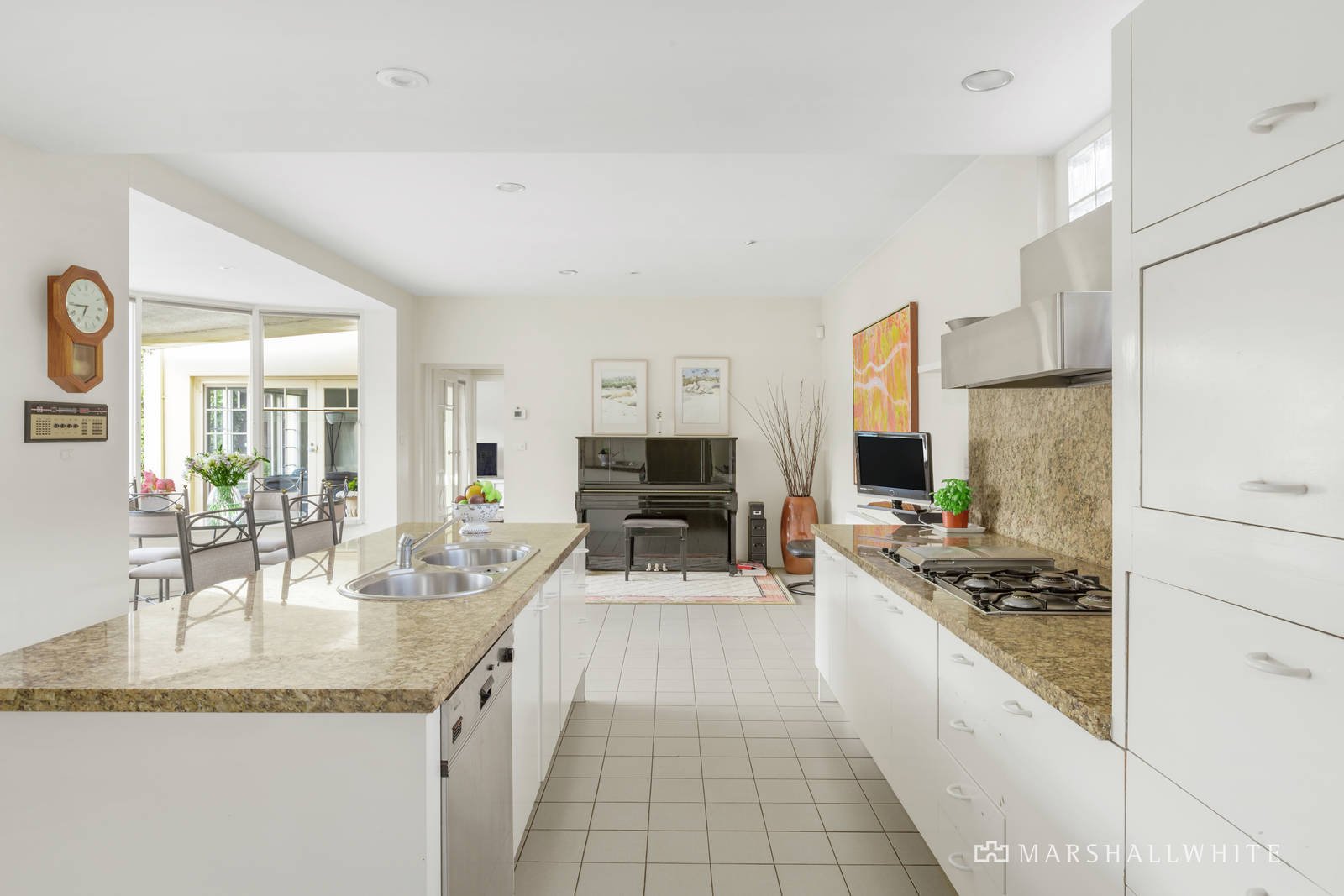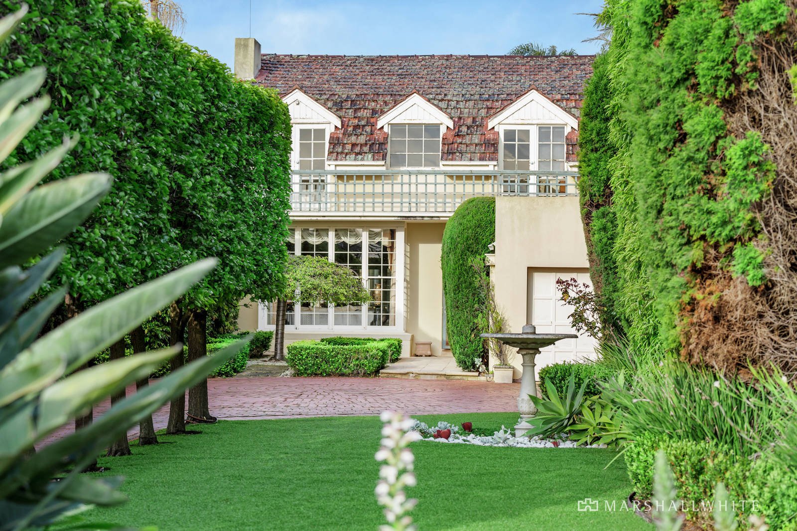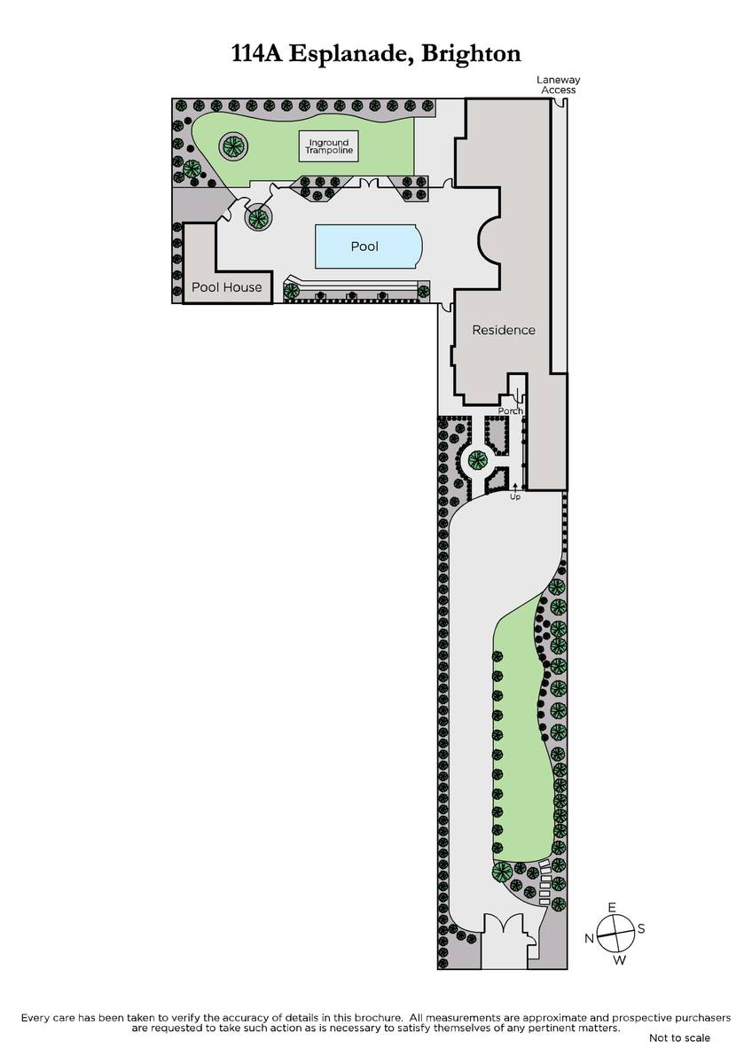 Gracing a genuine landmark location, directly opposite Brighton's famed bathing boxes, this super-impressive property delights with resort-style pool, manicured grounds, a charming residence, and fabulous sea views, all privately set on a unique, 1287sqm (approx.) battle-axe block of prime Bayside real estate. 'Somers', (circa 1957) is a double-storey English country-manor style home, positioned well back (over 30 metres) from the road, behind high walls and lush, landscaped grounds. An arcade of clipped trees lines the paved driveway that culminates in a turning circle. A grand entrance is assured through the over-sized pivoting front door, and the large bay window in the formal front sitting room, is true to its name, providing blissful water views. Perfect for lavish entertaining, the home has been updated and extended over the years and the large central kitchen with granite benchtops and a Gaggenau cooker adjoins a delightful glass-framed dining area, that looks out to the resort-style sandstone-surrounded 3-metre-deep solar/gas heated pool and self-contained cabana/pool house. French doors from the adjacent family room open to the expansive and lush lawn area featuring an Olympic size inground trampoline, and lined by perfectly pruned established trees, creating a serene and private haven. The ground level also includes a large rumpus room, marble bathroom, powder room, laundry, and access to the rear, which has a locked gate that opens to a Dendy Street laneway, offering another point of access. Served by dual staircases at both the front and rear of the home, the upper level comprises the four character bedrooms with attic ceilings, including the main with superb Bay views, a private balcony, large WIR and marble ensuite, as well as the main bathroom (also marble), and a fabulous central home office area, with a balcony overlooking the pool. Includes new hydronic heating throughout, ducted plus split system air conditioning, 'back to base' security alarm system, large poolside storage room, drip irrigation watering. Located literally a few metres from the sands and bathing boxes of Brighton Beach, hugging the corner of Dendy Street and The Esplanade.