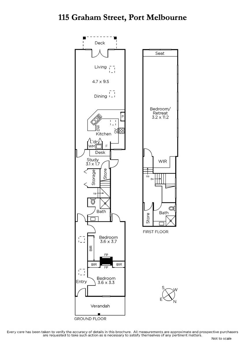 Two additional bedrooms with high ornate ceilings and open fireplaces showcase the warmth of the home's origins, enriched by a contemporary ground-floor bathroom with a walk-in shower and European laundry. Easily walk to Bay Street's restaurants, cafes and boutiques, stroll to South Melbourne Market, the beach and city-bound trams, and enjoy the comfort of reverse cycle heating, split system AC, rich Baltic pine floors and ample storage throughout. Land size 198sqm approx.