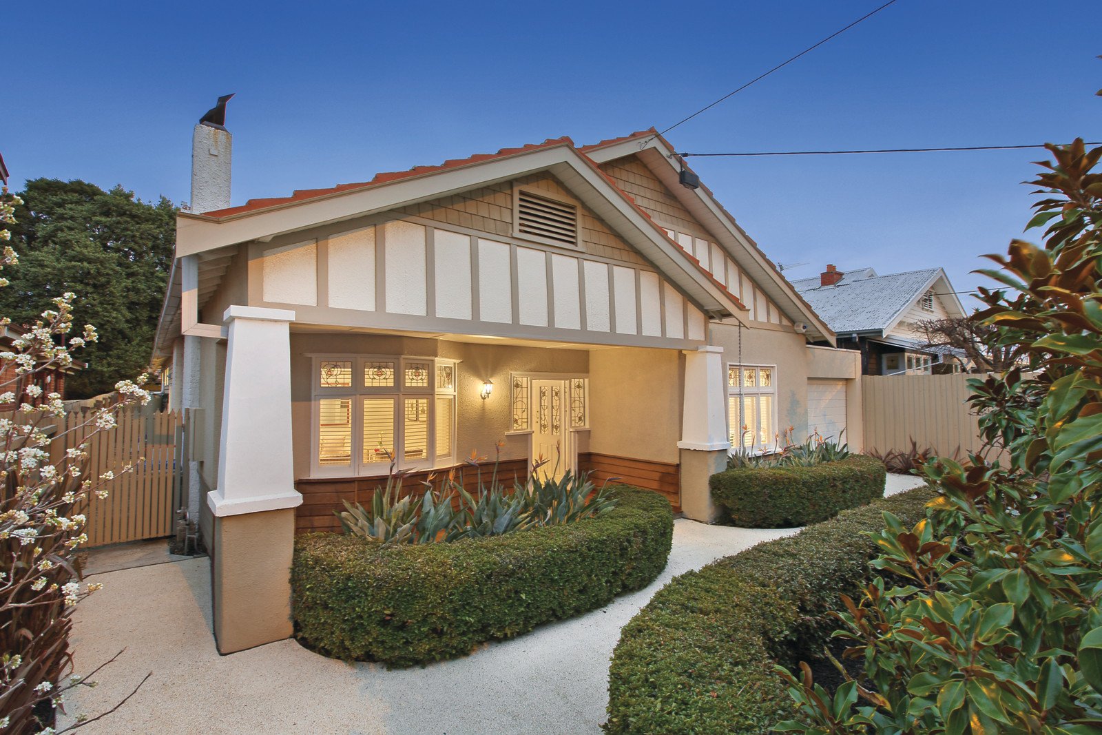 Utterly compelling, this superb family Californian Bungalow boasts irresistible street appeal and seamlessly renovated and extended interiors of generous proportions harmoniously blending heritage originality with consummate contemporary comforts. Beautifully appointed interiors reveal elegant formal sitting room with open fireplace and bay window, impressive open concept living and dining domain and a well appointed Kitchen boasting substantial storage, a polished concrete island bench and smeg appliances. Cafe style bi fold doors extend to designer decking with inbuilt seating ideal for seamless indoor-outdoor entertaining, a grassed play area and cubby house. Four bedrooms accommodate in style, main with polished ensuite, walk in robe and open fireplace. Features security system, ducted heating/evaporative cooling, slab heating, exceptional storage, fitted laundry, 2500lt watertank, automated watering system and lock up garage with rear roller door. Close to Firbank, St Leonard's, Bay Road Nursery Cafe, village shops, Hobson's Bay, Sandringham's Yacht Club and Station.