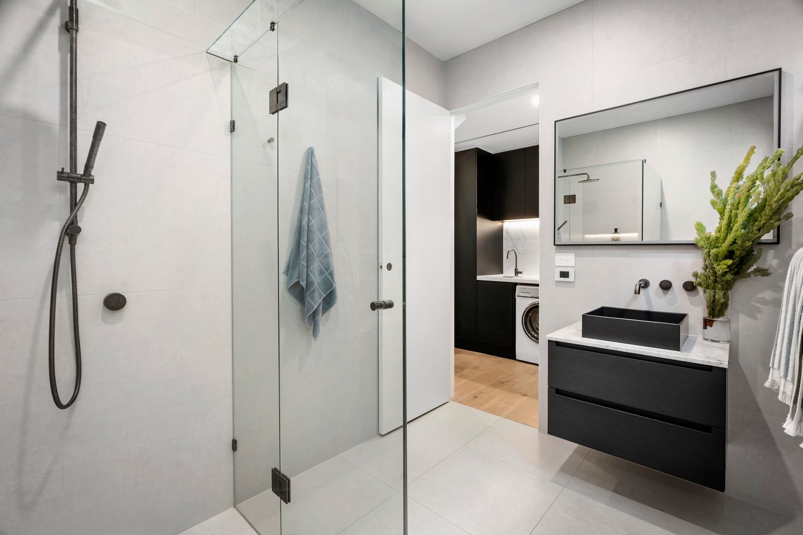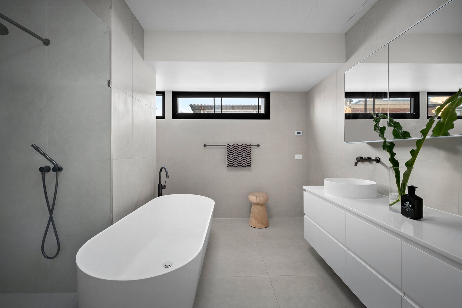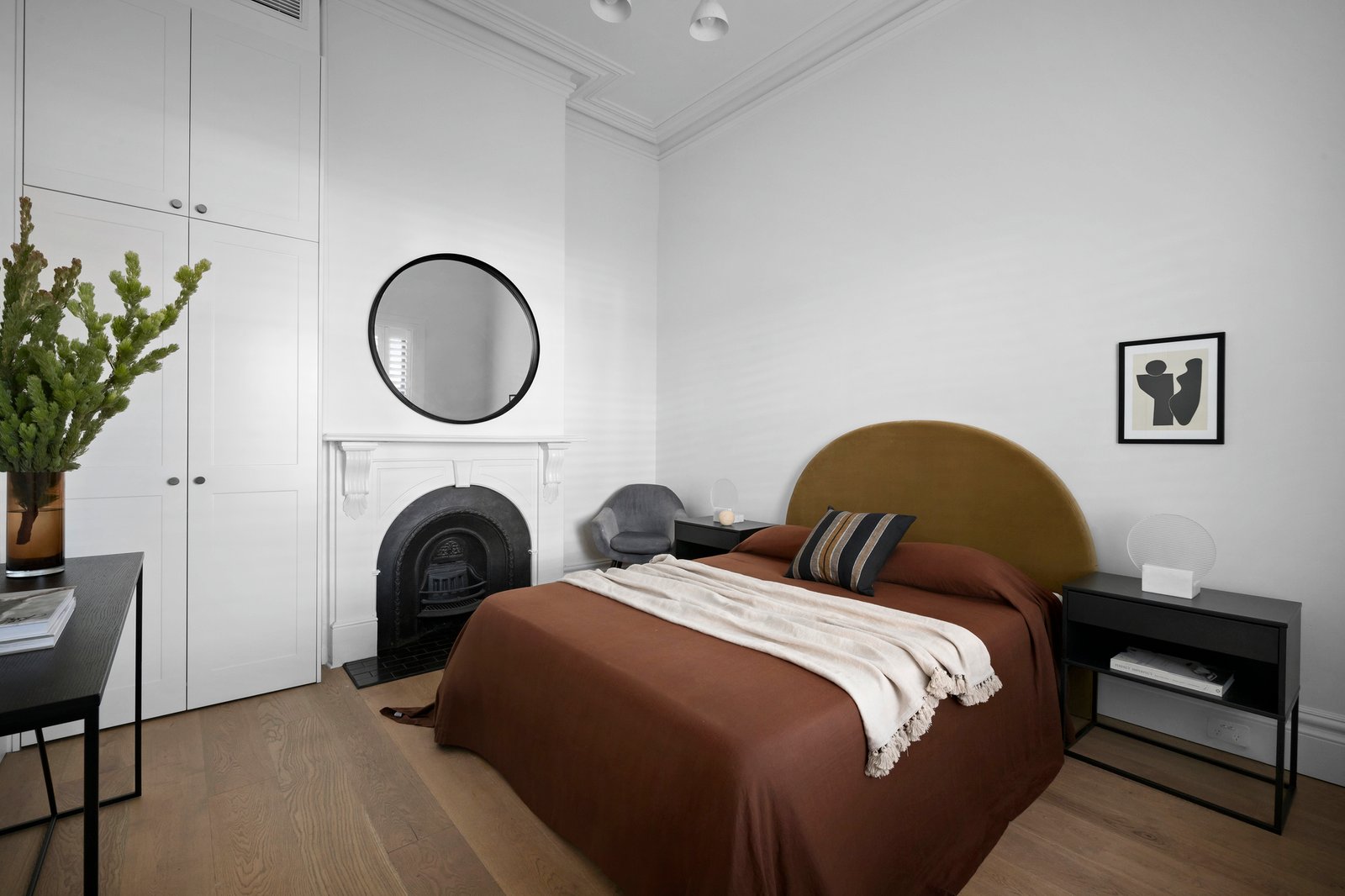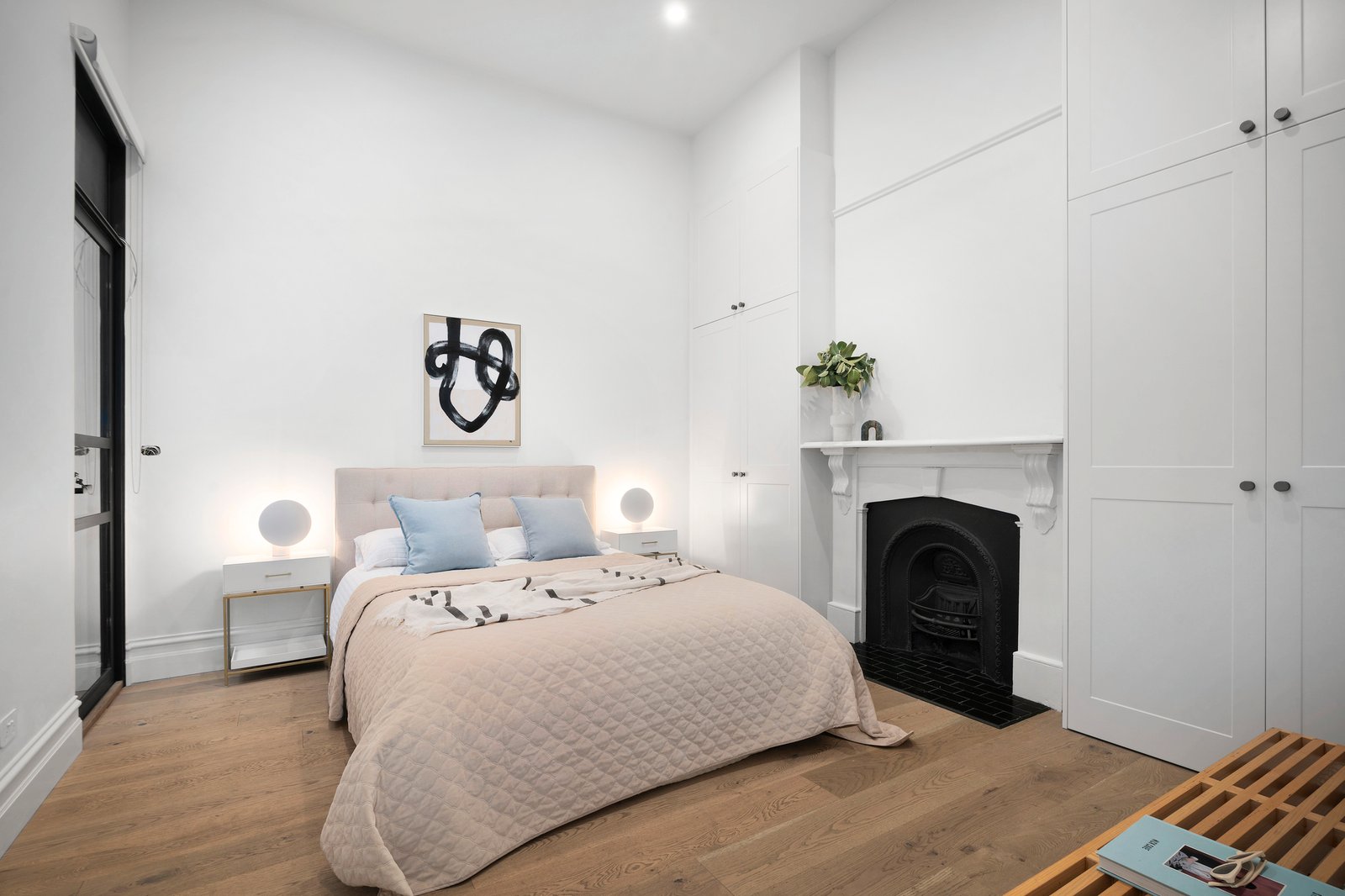 An exquisite main bedroom suite spans the entire upper floor, featuring a light-filled living area with a built-in office nook and a private balcony terrace. This sanctuary includes a dressing room and a luxurious ensuite with a freestanding bath and dual vanity, while the two additional ground-floor bedrooms are accompanied with robes in and a stylish bathroom. Metres from Albert Park College and Primary School, this impressive home also boasts hydronic heating, engineered oak floors and 100% wool carpets, European-style laundry, double glazing, reverse-cycle ducted heating/cooling systems, a spectacular Gio Ponti 1950s light fitting in the hallway and underfloor bathroom heating.