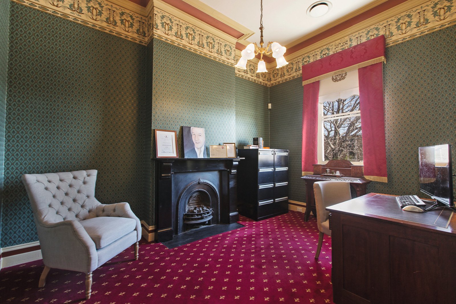Rich period detail is displayed through the majestic arched hallway, exquisite sitting room with marble open fireplace and elegant formal dining also with an open fire. Featuring striking New York marble benches, the gourmet Miele kitchen and sunny dining area open to a north-facing deck. Beneath vaulted timber ceilings and boasting a stacked stone wall, the inviting living room extends living and entertaining out to a private northwest courtyard. Versatile accommodation upstairs includes a beautiful main bedroom with balcony and marble gas fire, opulent fitted dressing room or 4th bedroom, 2nd bright bedroom with BIRs, stately study or 3rd bedroom with gas fire and two designer bathrooms.