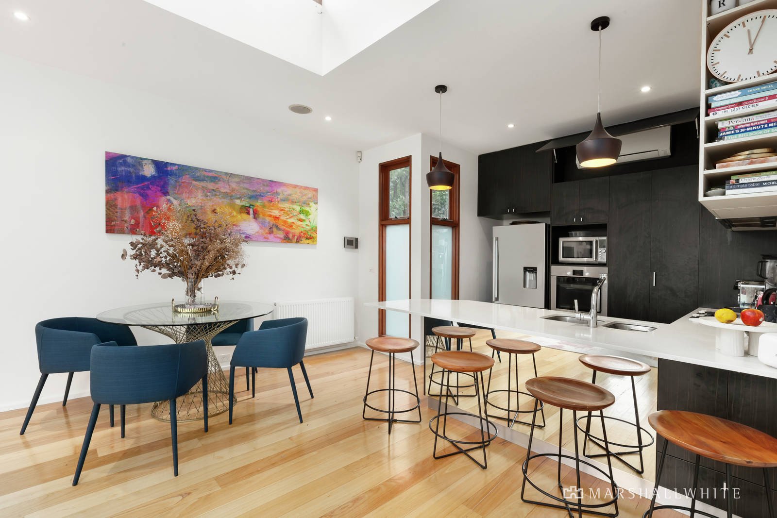 Barely metres from the Yarra River and parkland and also close to Church St trams, West Hawthorn Village, Hawthorn station and Victoria Gardens, this striking architect designed contemporary residence is a serene, stylish and sun-drenched sanctuary perfectly designed to cater to a busy modern lifestyle.