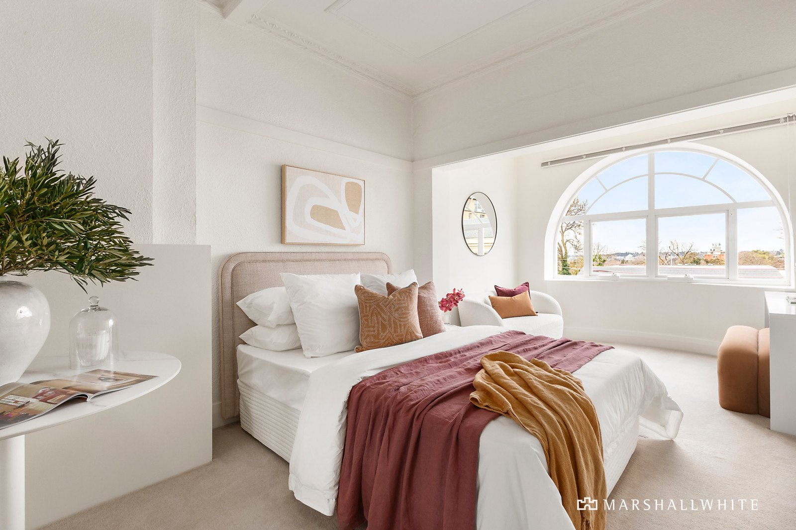 Evoking a Paris chic sense of grandeur under towering ceilings and with an abundance of original character, the home's contemporary kitchen / meals is Miele-equipped and semi-attached to an expansive lounge / dining that is flooded with light from a pair of Juliette balconies. Securely accessed via intercom entry, the home also reveals an oversized bedroom with a generous amount of built-in cupboard storage - including a naturally lit walk-in robe - as well as a stunning north-facing arched window with city views. Additional highlights include a sun-filled study, a spacious bathroom with a huge shower, an intelligently concealed laundry, front and rear entry and access to a communal herb garden.