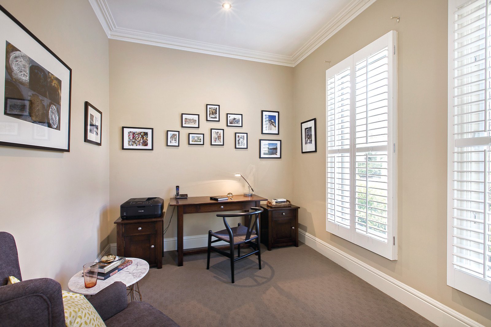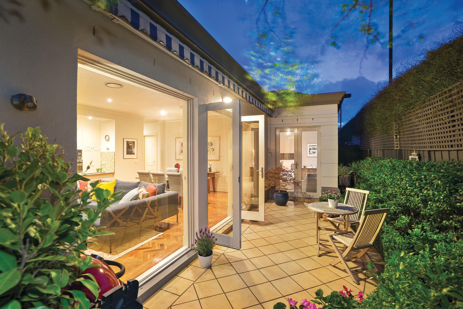 Parquetry floors and high ceilings distinguish the entrance hall leading to an inviting study/3rd bedroom, gourmet Smeg kitchen boasting granite benches and spacious sun-drenched living and dining room opening to the picturesque private northwest courtyard. The sunny main bedroom with travertine en-suite and walk in robe also opens to the courtyard. A second double bedroom with built in robe is accompanied by a stylish travertine bathroom.