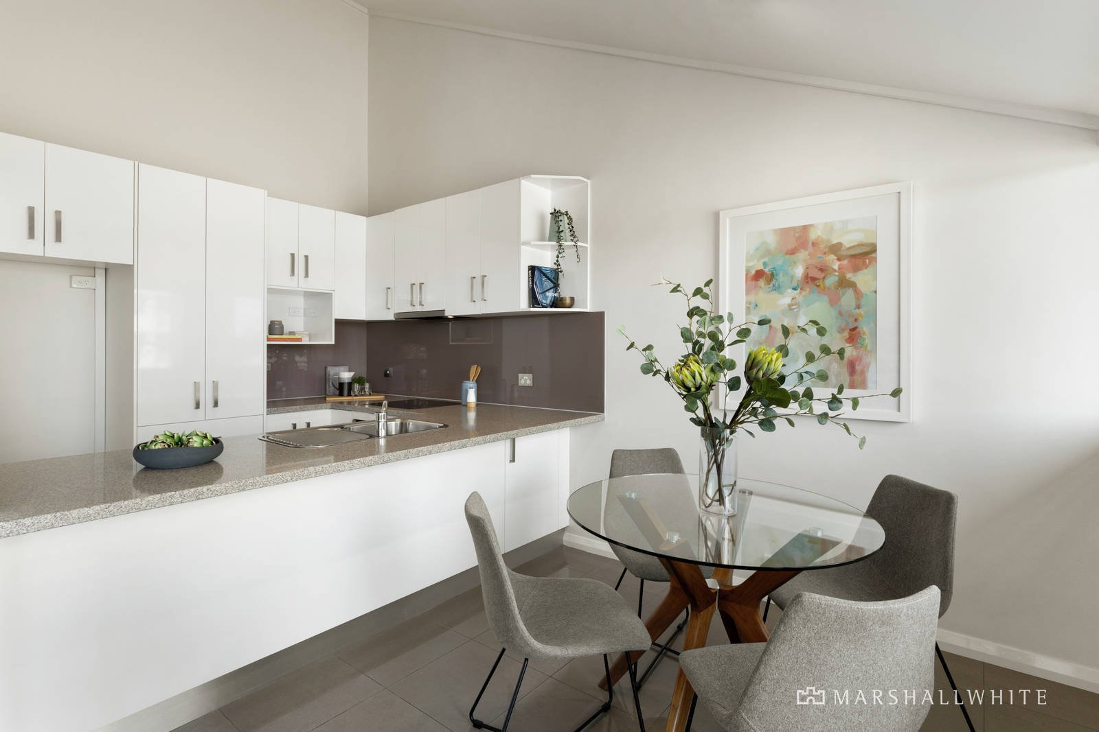 A spectacular waterfront apartment without peer, this large and lofty, three bedroom split-level home has been magnificently crafted to create an unforgettable sense of occasion in the renowned 'The Courtyard' building. Enviably situated directly opposite Catani Gardens, this extraordinary apartment combines an exclusive, resort-like style of living with a stunning waterfront panorama, all in one of Melbourne's most iconic, water's-edge positions. Under breath-taking vaulted ceilings, a freshly carpeted and recently painted presentation is further enhanced by a stone-topped gourmet kitchen and open-plan meals / living where the connection to a balcony is seamless. Crafted for maximum visual impact, huge windows frame an outlook that extends from the building's in-ground swimming pool to the palms of Catani and the sands of the beach. Upstairs accommodation is flawless with large built-in robes in all bedrooms, a master bedroom ensuite and a central bathroom that sparkles, while the apartment also offers access to the pool, as well as secure video entry, a coveted parking space, a laundry, split system heating and air conditioning. Simply step across the road for some fresh air, some sun or some exercise at Catani Gardens or along the beach, or maybe a coffee at West Beach Pavilion, plus you have Fitzroy Street's cafe scene, dining and bars around the corner, The Espy down the road and city-bound trams within easy reach as well.