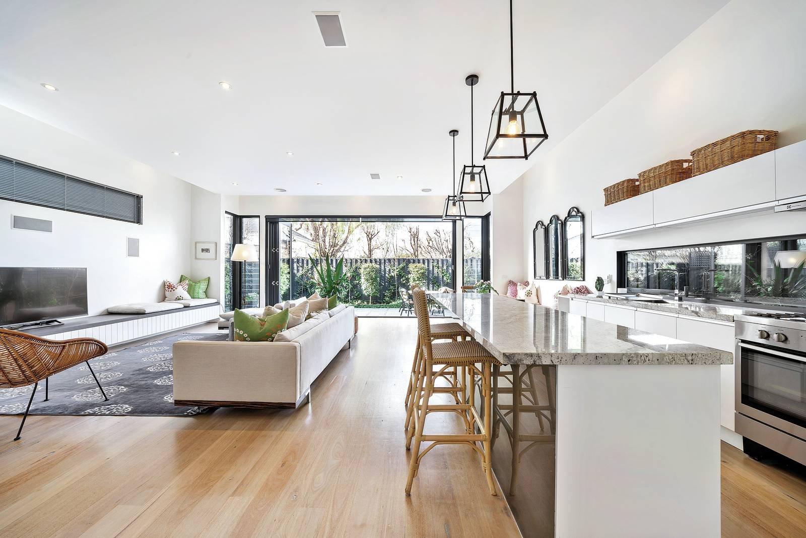 Transformed by an outstanding contemporary renovation, this impressive four bedroom Federation residence presents a versatile floorplan perfectly equipped to meet the requirements of each stage of family life. Soaring high ceilings and polished lime washed floorboards enhance the sense of open space and effortless flow created by the expansive proportions.