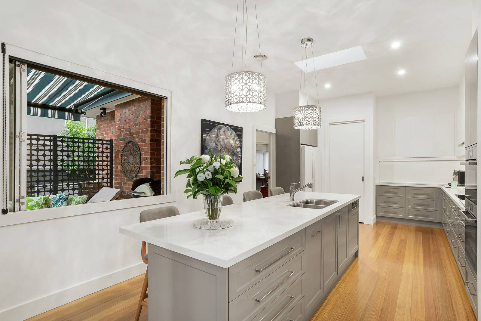 Behind the classic c1950's solid brick exterior, this captivating residence's brilliantly renovated and extended dimensions deliver unbeatable single level living with an inspired sense of style. Original ceilings and polished timber floors are featured in the exceptionally generous central entrance hall which flows through to elegant formal living/4th bedroom and separate dining room, both with original brick fireplaces and etched glass French doors. A chef's dream kitchen appointed with stone benches and premium Bosch appliances and the expansive living room open out to a large covered al fresco dining deck with sun blinds and the leafy private garden surrounds. The beautiful main bedroom with window seat and built in robe complements a second bedroom with robes, a home office or bedroom and two stylish bathrooms. In a desirable location near Ashburton Village, Leo's Supermarket, Burwood station, parks, Toorak Rd trams, schools and freeway access, it includes alarm, CCTV, double glazing throughout, heating/cooling, audio wiring, laundry, wine storage, remote sun-awning, ample storage, shed and tandem garage.