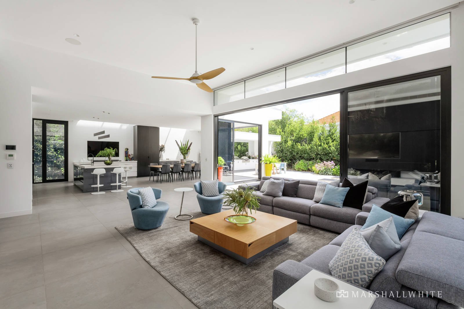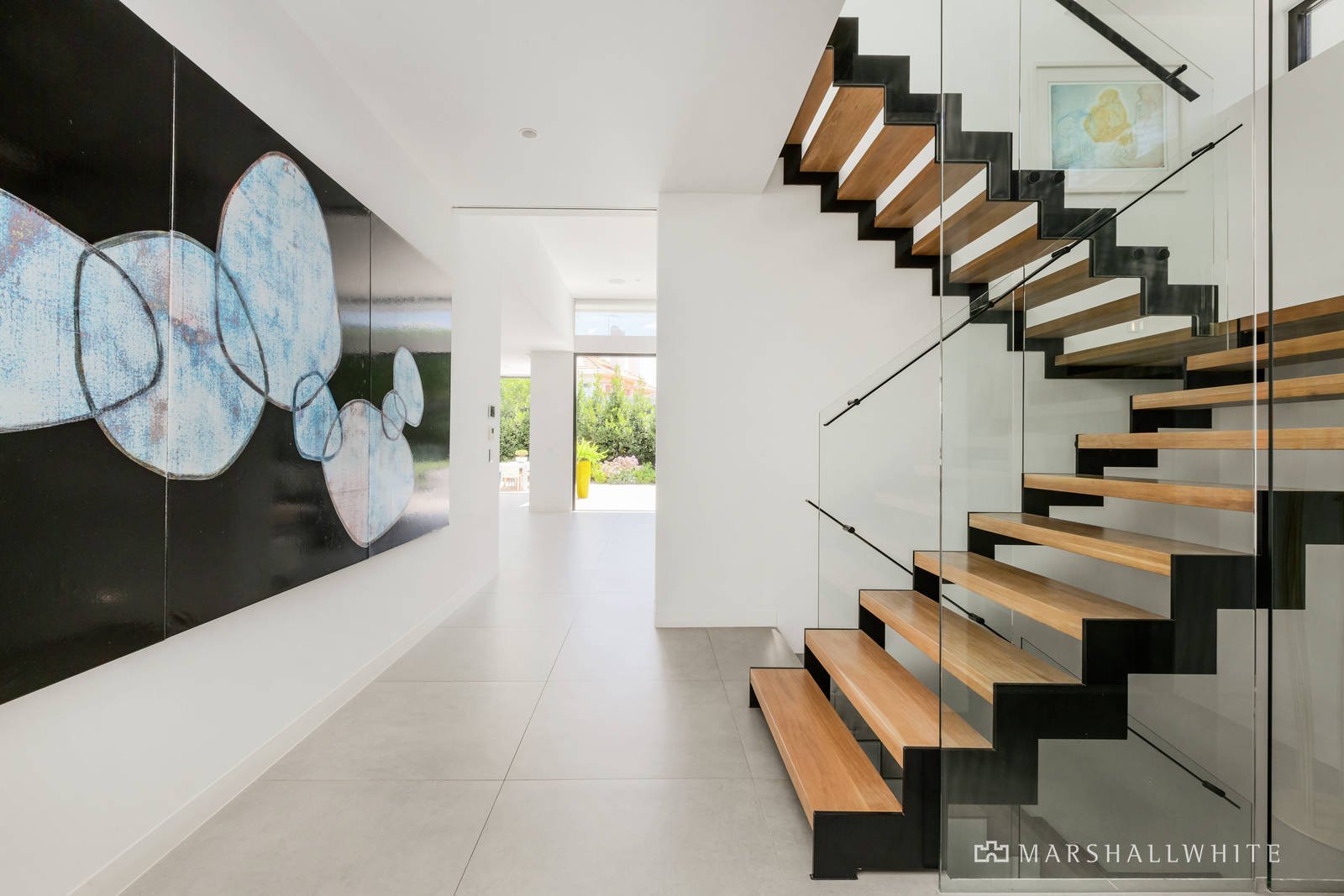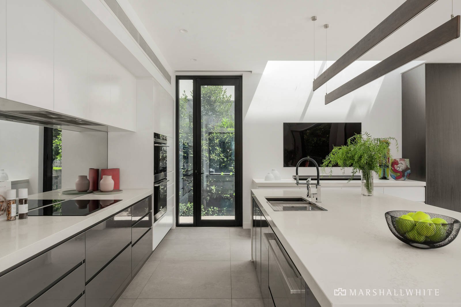 The perfect lifestyle home brings outstanding design, a no-expense spared interior and state-of-the-art home automation to one of Brighton's finest beachside streets. Like-new and luxuriously appointed, this excels for family living and large-scale entertaining. The Jack Merlo-designed garden with a pool and spa adds a resort vibe to this custom-crafted hideaway. Three lift-accessed levels feature up to five living zones, five bedrooms and a large home office, five bathrooms, and a five-car basement garage. Enter via the statement pivot glass door and discover a large family room and dining zone full of light and luxury, a zoned lounge, basement cinema, a multipurpose room that can be your games room, gym or au pair/grandparents' residence, and a large upstairs retreat with city views. Cooking for family and friends is so much easier with metres of streamlined storage in the state-of-the-art kitchen and butler's pantry. There're two ovens and a Smeg induction cooktop, two dishwashers, Zip tap, extensive refrigeration and automated cabinetry. Premium inclusions are everywhere, including the main bedroom's large ensuite and dressing areas. They feature an infrared sauna with its own TV, direct garden access and views, marble feature tiles, a Kaldewei spa bath, and plenty of wardrobe space. Enjoy a five-star movie experience in the surround sound cinema, watch the New Year's Eve fireworks from the large upstairs terrace, and appreciate the privacy of this exclusive home. This is the perfect entertainer's paradise with everything from a built-in Weber barbecue to a cocktail cabinet in the dining room, a kitchenette next to the cinema, and a gourmet garden with lemons, passionfruit and bay leaves. High-tech and high-end features include keyless entry, a self-cleaning pool and spa, slab hydronic heating, a glass floor, and extensive security. Take the time to see this ultra-indulgent domain, with easy access from Martin Street and the bay metres away.