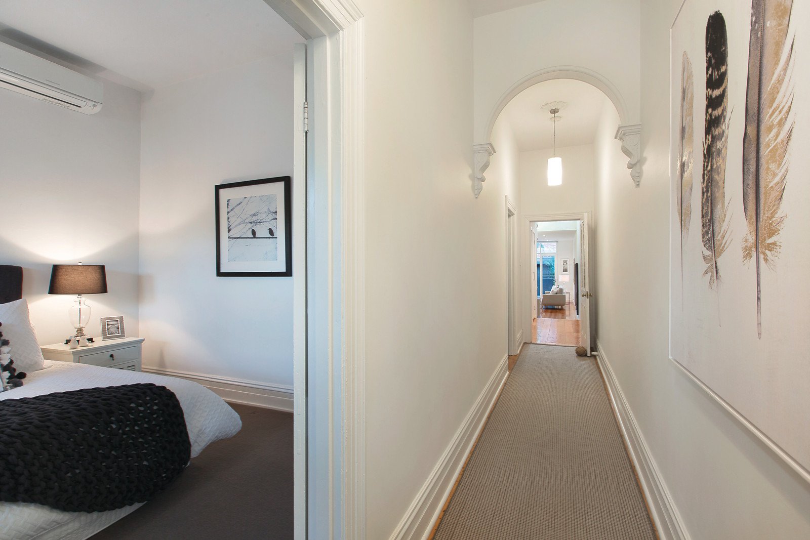 Baltic pine floors flow through the traditional arched hallway to two beautiful double bedrooms and a sleek bathroom. The generously proportioned and light-filled main bedroom upstairs boasts a stylish sky-lit en-suite and walk in robe. High ceilings and timber floors define the stunning, spacious open plan living and dining room featuring a gas fireplace and superbly appointed modern kitchen. Living extends out to a sunny private northwest landscaped garden with entertaining deck and off street parking via ROW. It also includes ample storage and a euro laundry.