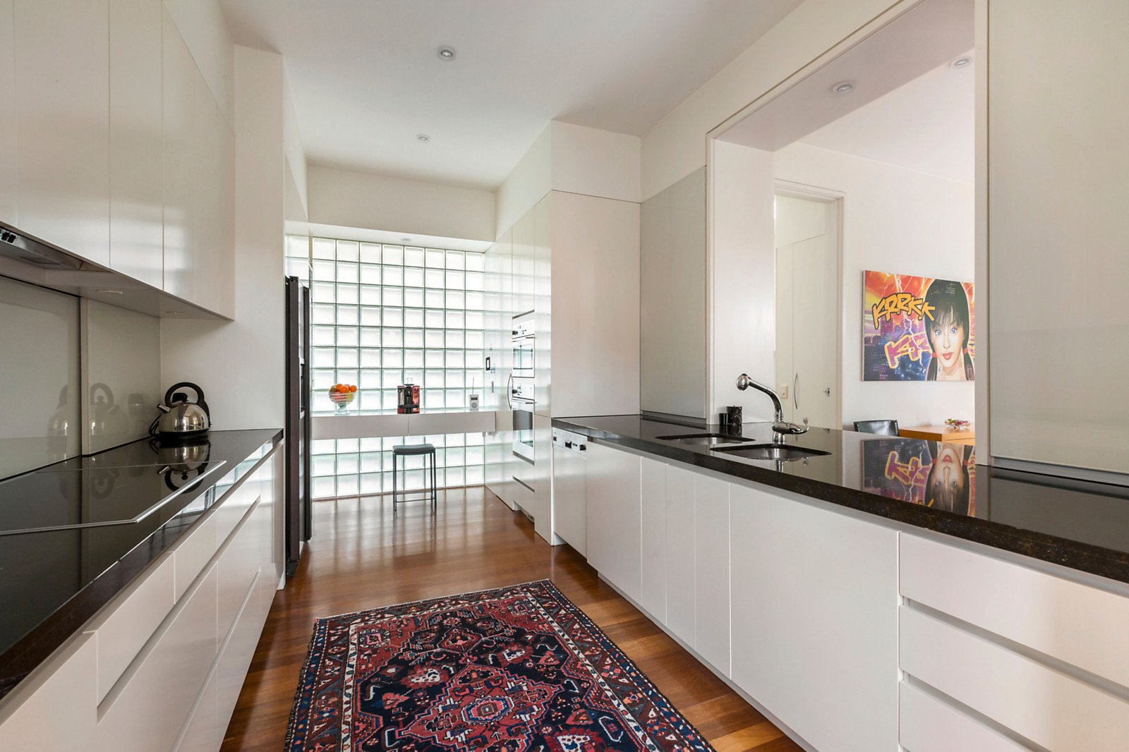 Bespoke joinery, crisp lines and soaring ceilings add to the timeless refinement throughout. The central Tallowwood hallway introduces a generous library with fitted executive study area, a beautiful sitting room with open fire and French doors a central courtyard and a glorious formal dining room. The gourmet kitchen is a chef's haven with its granite benches, Miele appliances, induction cooktop and impressive storage solutions including dual pantries. Streaming with northern light, the palatial family and dining room opens to both the sunny central entertaining courtyard and to a large, decked garden with solar heated mosaic tiled infinity pool and covered built in BBQ. It is an entirely private oasis all surrounded by lush greenery. The lavishly proportioned main bedroom with a designer marble en suite and dressing room is complemented by two additional bedrooms with robes and two stylish bathrooms. On the basement level, there is a large wine cellar/store-room and double garage.