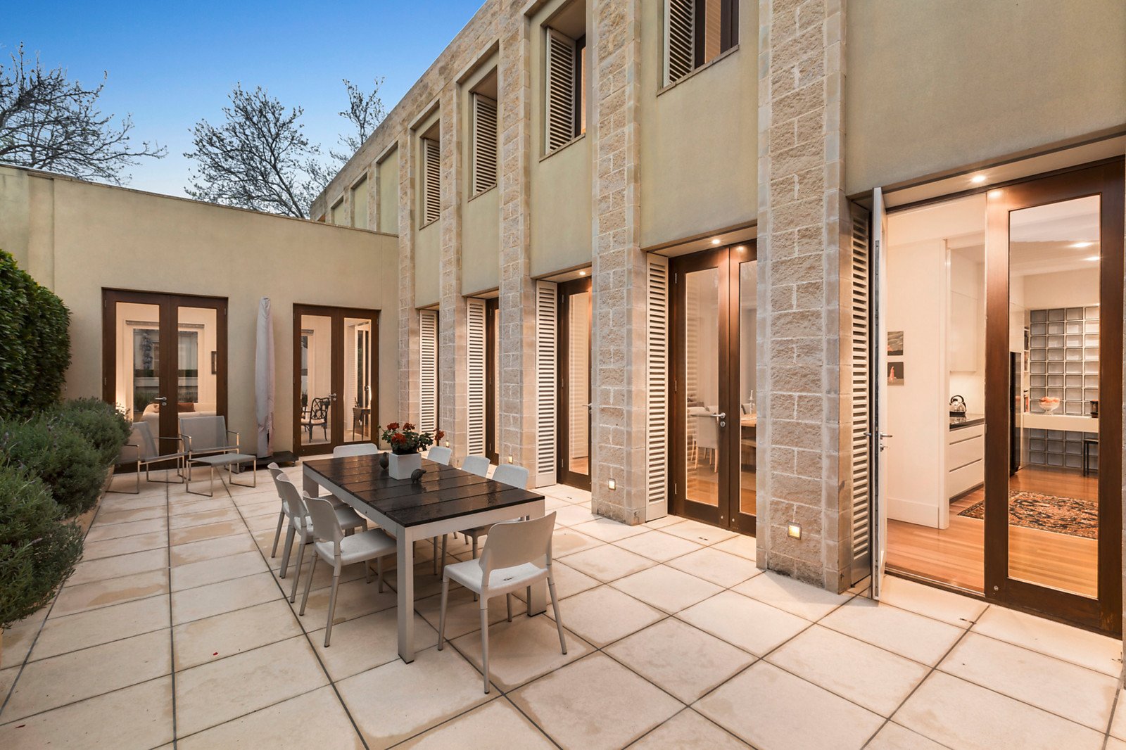 Exclusively situated in a tranquil pocket close to elite schools, Toorak station, Beatty Ave, Hawksburn Village and Orrong Park, it is comprehensively appointed with zoned alarm, hydronic heating, air-conditioning, ducted vacuum, recessed external shutters, Corian laundry, irrigation, an abundance of storage and auto gates. Land: 634sqm approx.